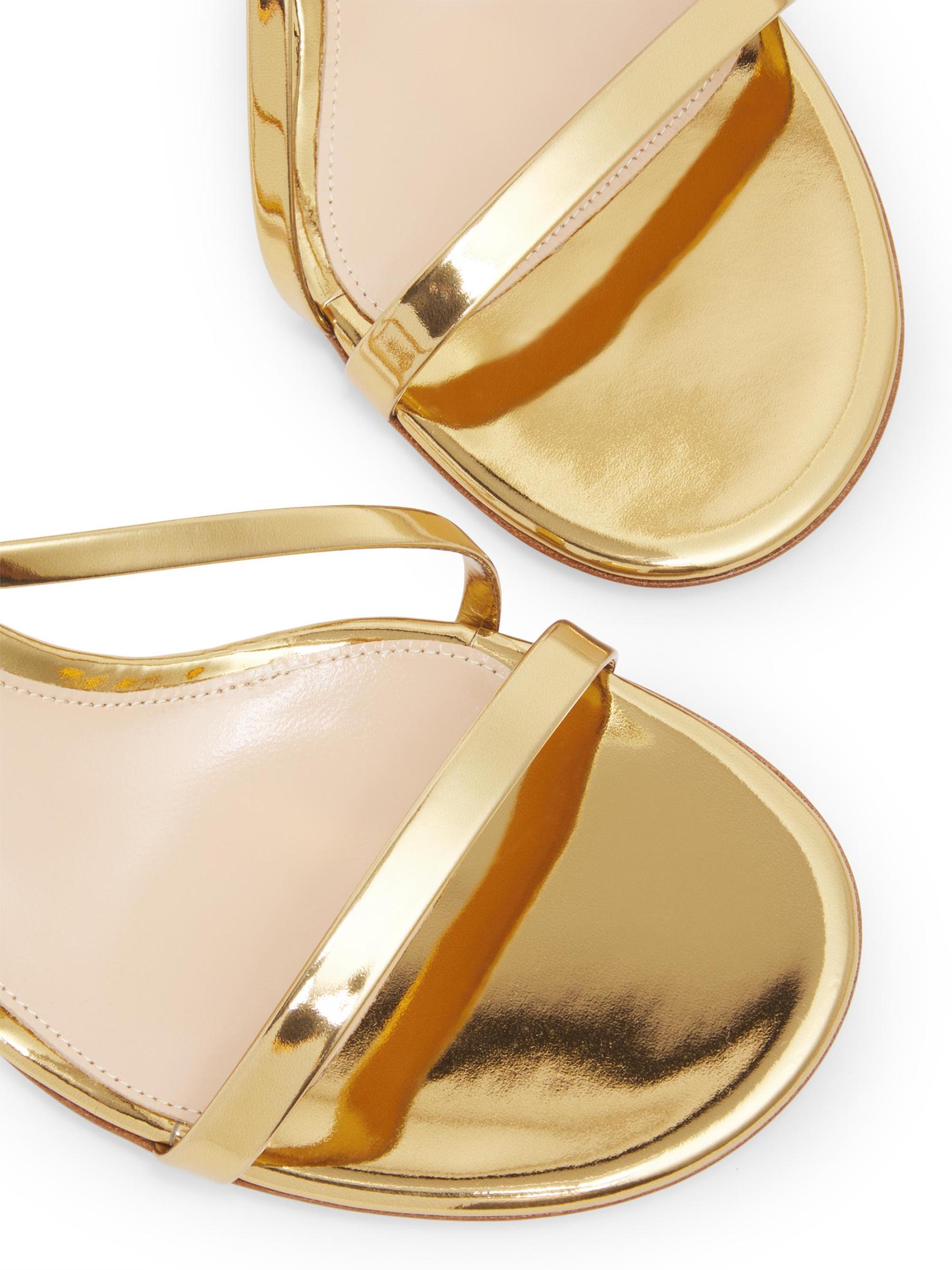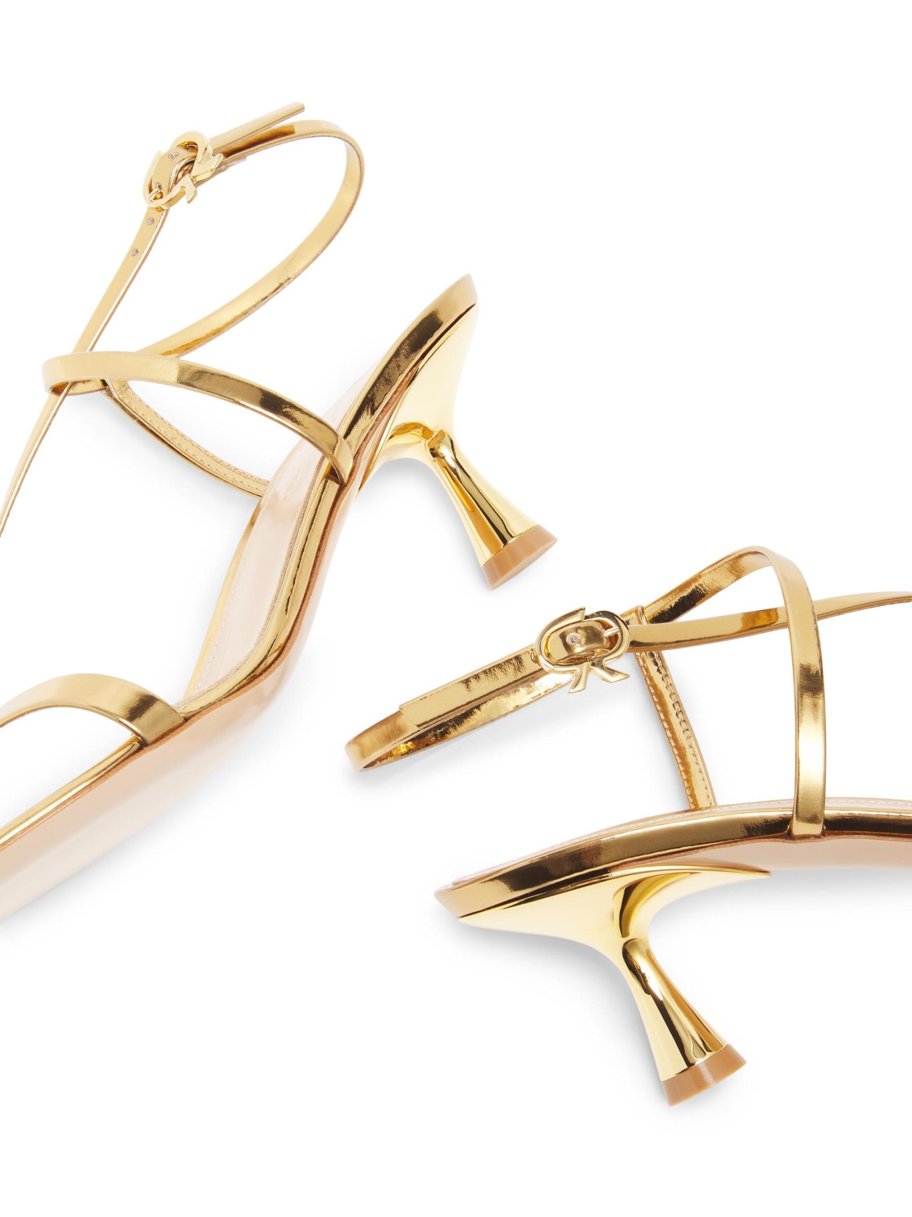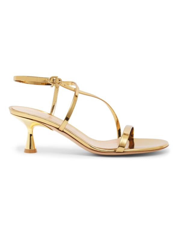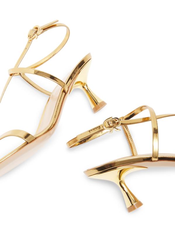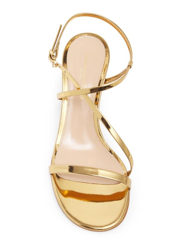 صُمم صندل Vitello Glove من جيانفيتو روسي بأحزمة جلدية نحيفة فوق كعب قطة مناسب لكل الأوقات.
