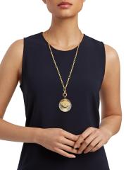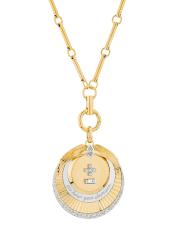 من مجموعة Vivacity. تتميز قلادة Foundrae المصنوعة يدويًا من الذهب عيار 18 قيراطًا بقلادة ميدالية عليها علامات زائد وناقص للدلالة على التعبير الفرنسي «Qu'hier que demain» الذي يعني «أكثر من الأمس وأقل من الغد». تضيف قطع الماس المختلطة لمسة من التألق إلى هذا الإكسسوار الرائع.الماس، 1.33 طن درجة وضوح الماس: VS1 ذهب أصفر وأبيض عيار 18 قيراطًا مشبك لوبستر صُنع في الولايات المتحدة الأمريكية