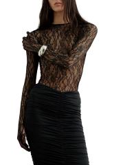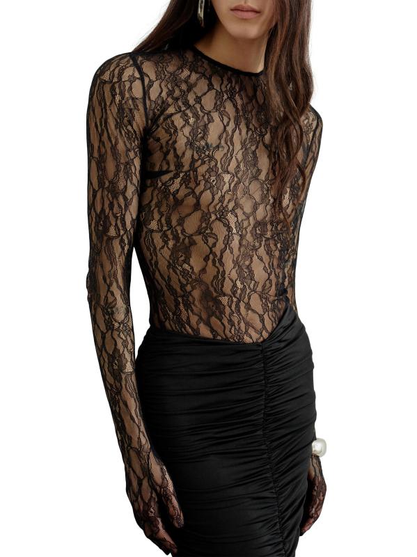 تم تصميم فستان Vivienne maxi هذا من The New Arrivals Ilkyaz Ozel بجسم من الدانتيل الشفاف بأكمام طويلة وقفازات وتنورة من الجيرسيه المكشكشة.