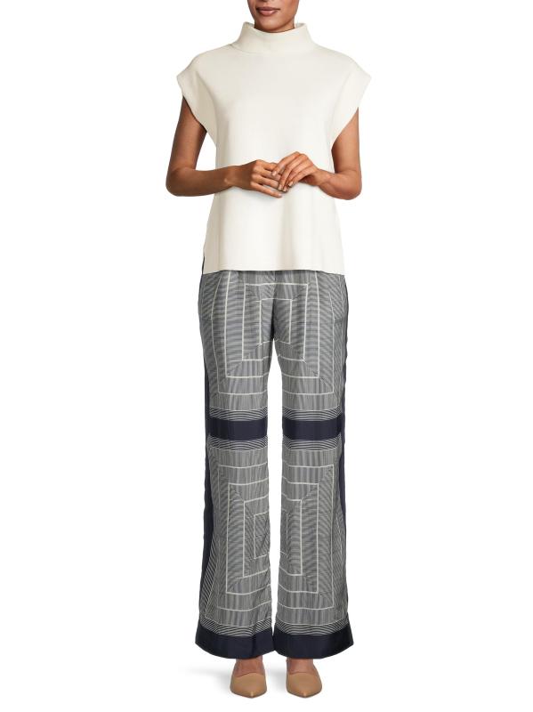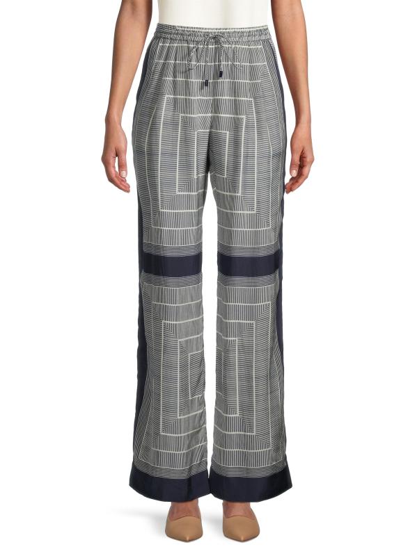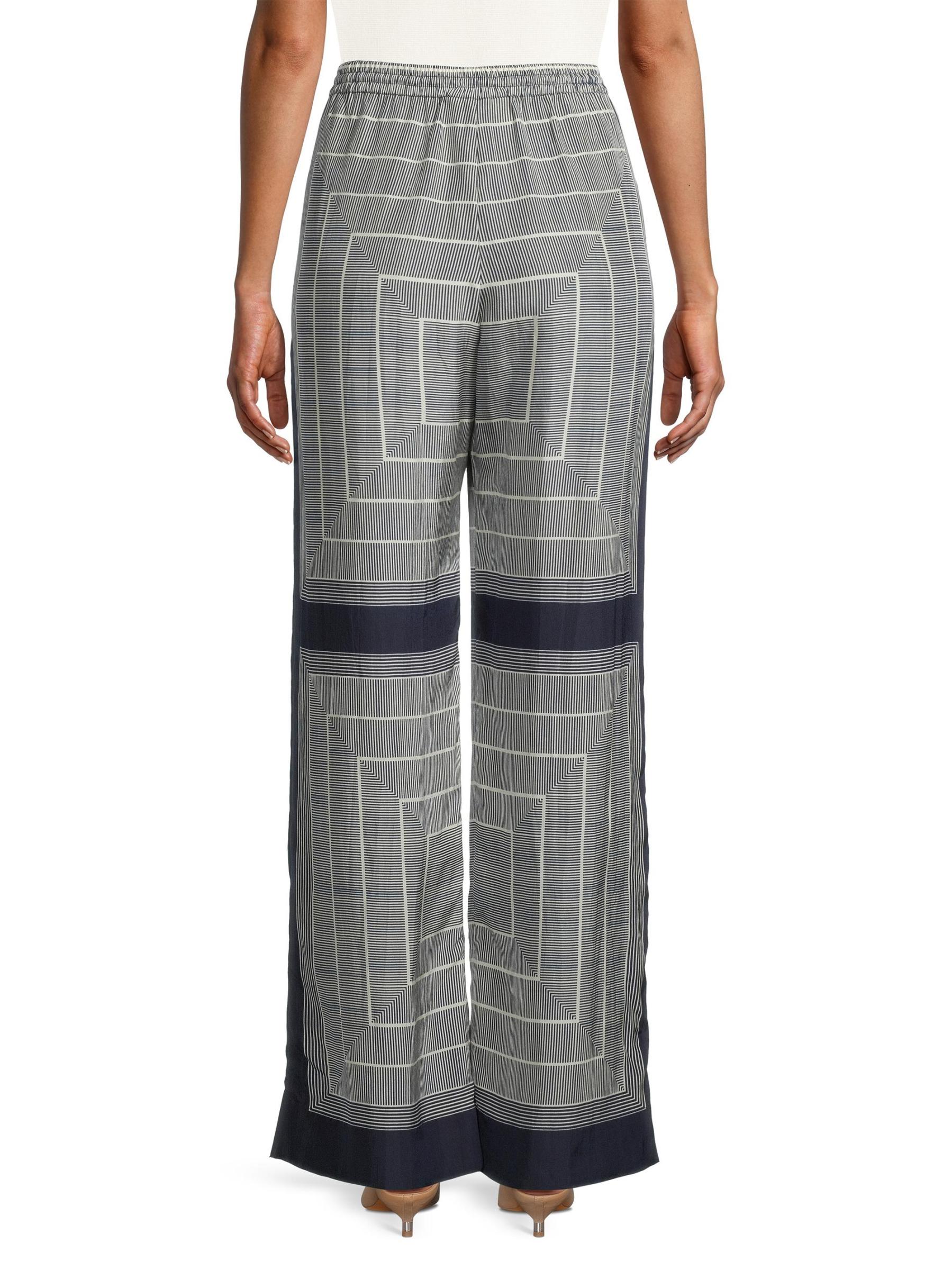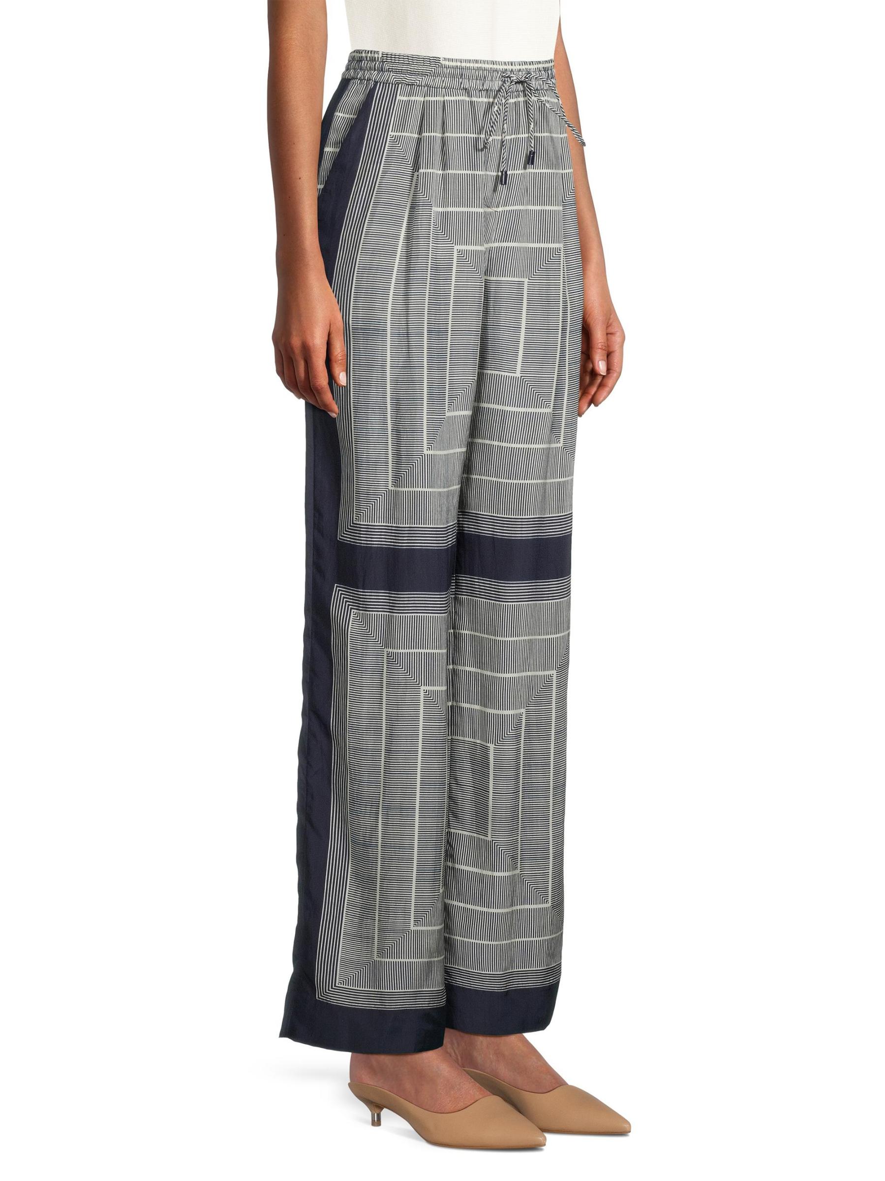 حصري. من مجموعة فويجر. تتميز سراويل جينجر آند سمارت المريحة بحزام خصر قابل للتمدد وجيوب جانبية على الدرز. تتميز هذه القطعة، المصنوعة من الحرير الفاخر المطلي بالرمل، بنقشة مستقيمة الساق والحدود.