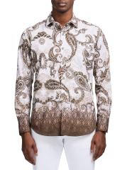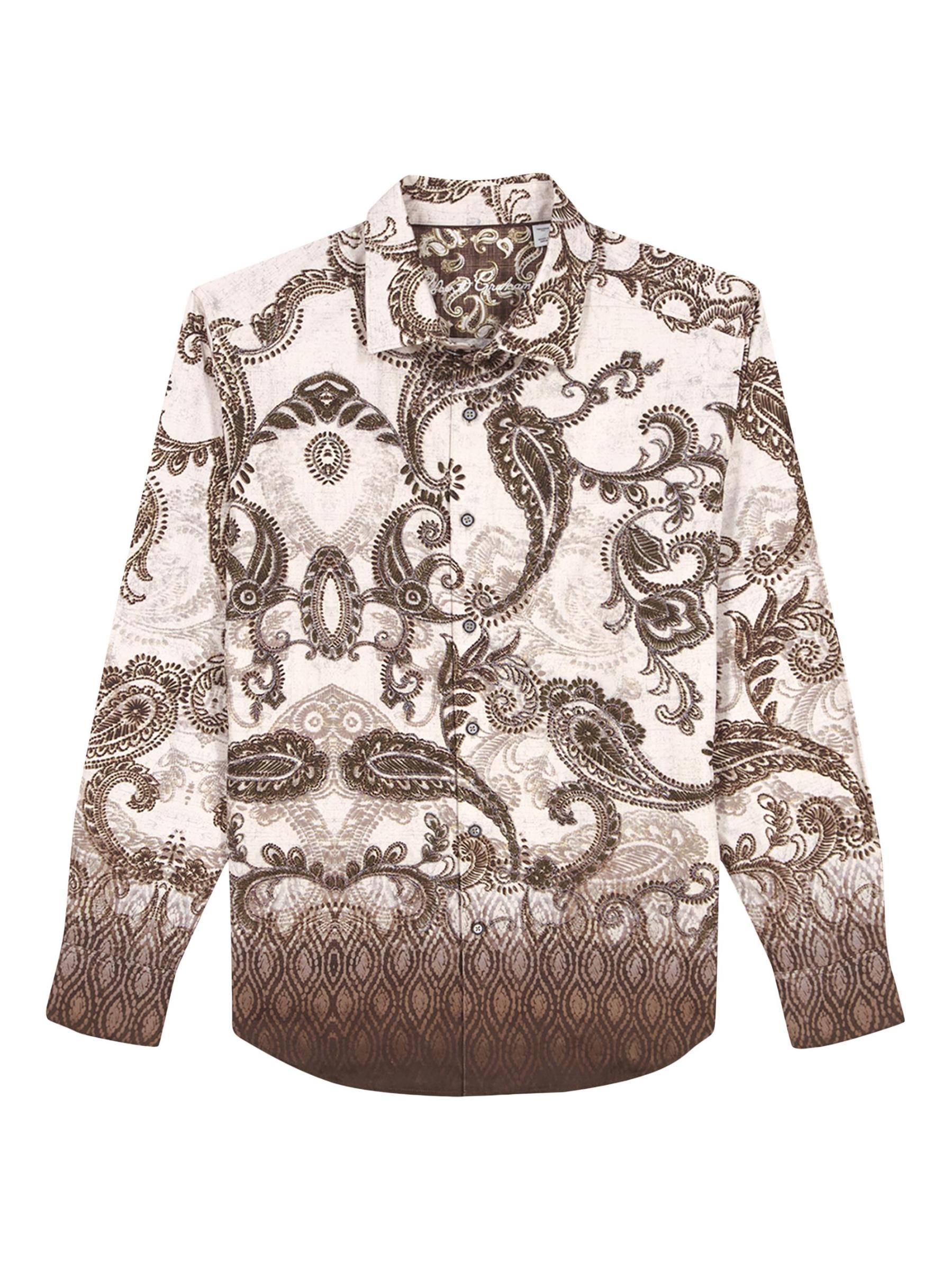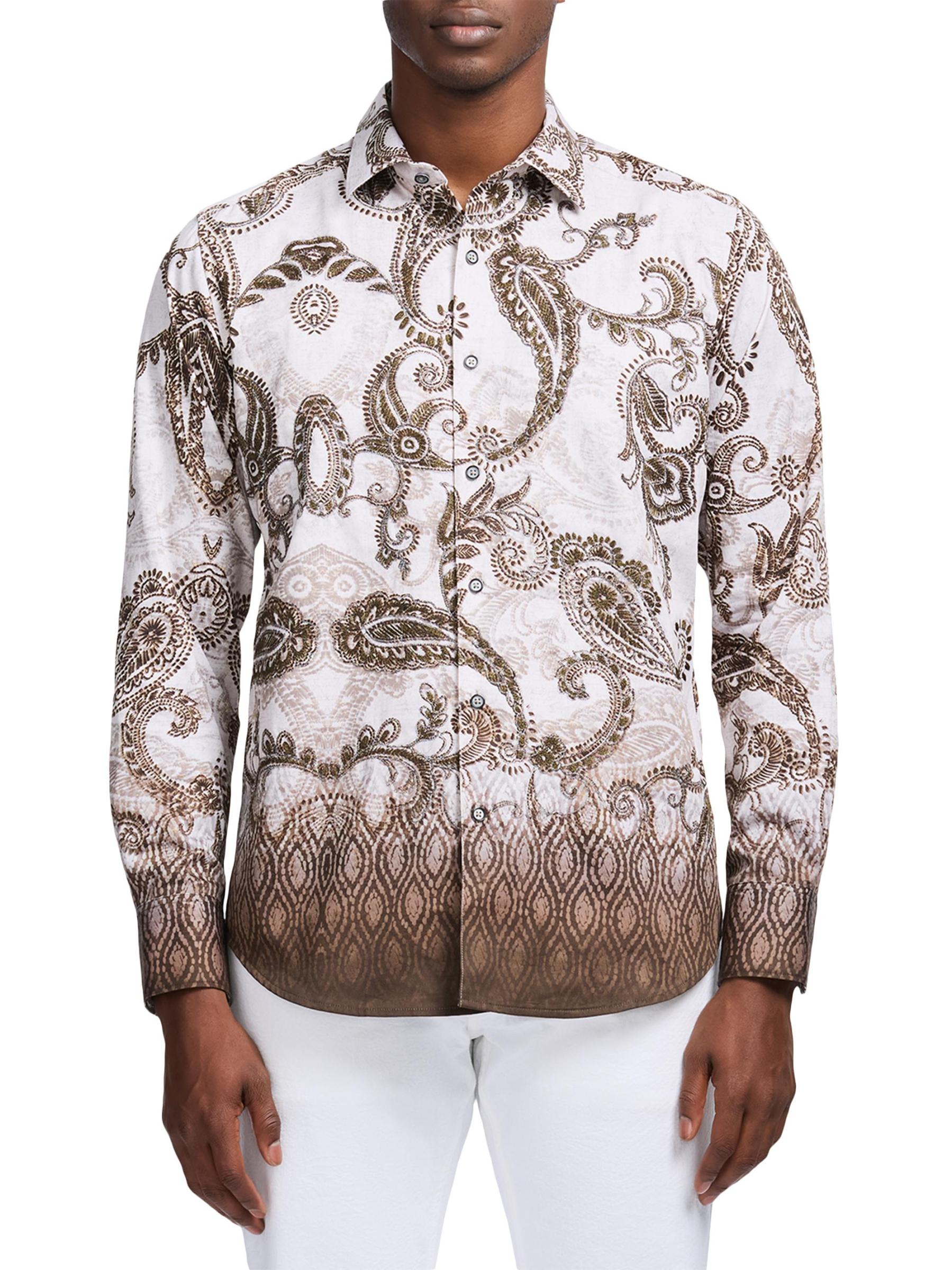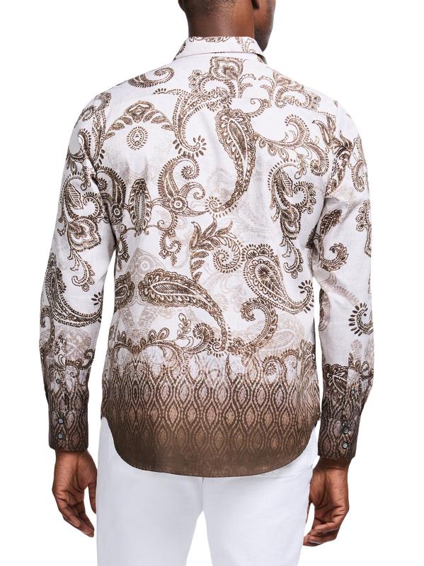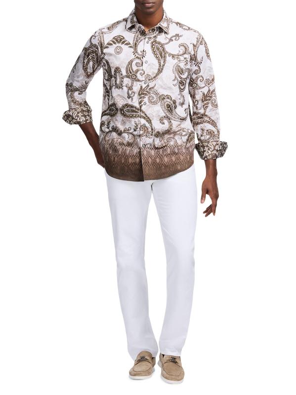 تنجرف البيزلي العائمة عبر القطن المغسول بشكل متدرج في قميص Wallington هذا من روبرت جراهام.