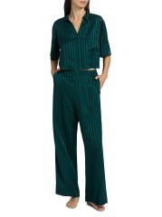 من مجموعة الحرير القابل للغسل. تتميز هذه البيجامات من Lunya بنمط الجاكار المخطط. تتضمن المجموعة بلوزة بأكمام قصيرة وبنطال متناسق عالي الساق واسع الساق. 100٪ حرير. يُغسل في الغسالة. مستوردة.