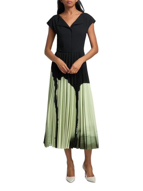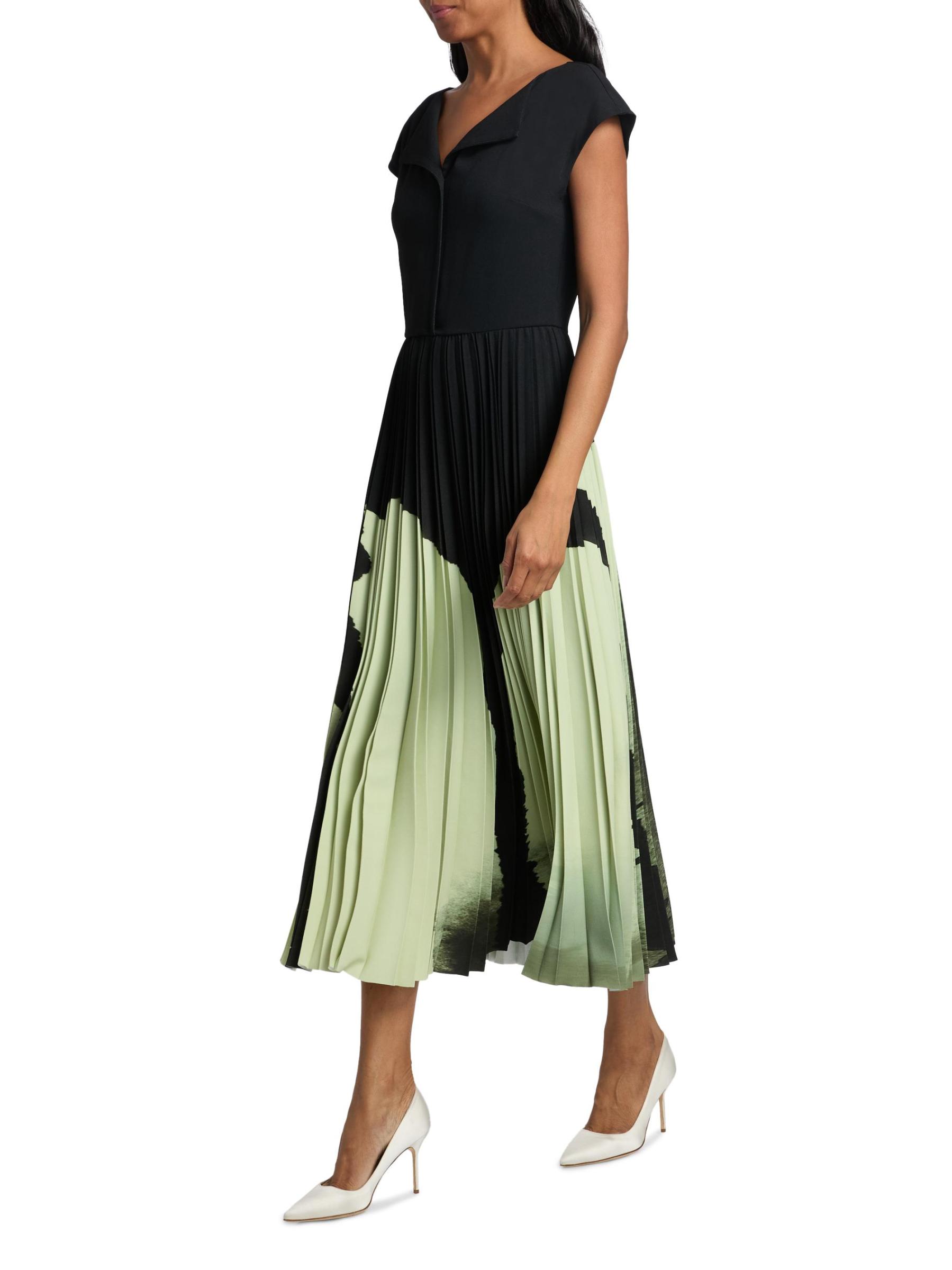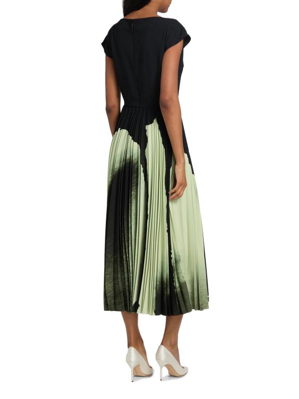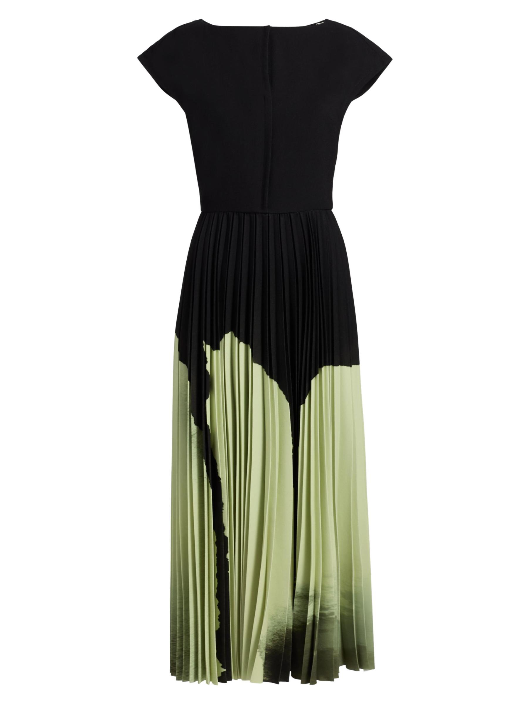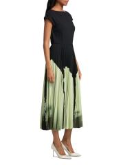 فستان متوسط الطول مزين بطيات من الكريب بألوان مائية