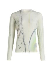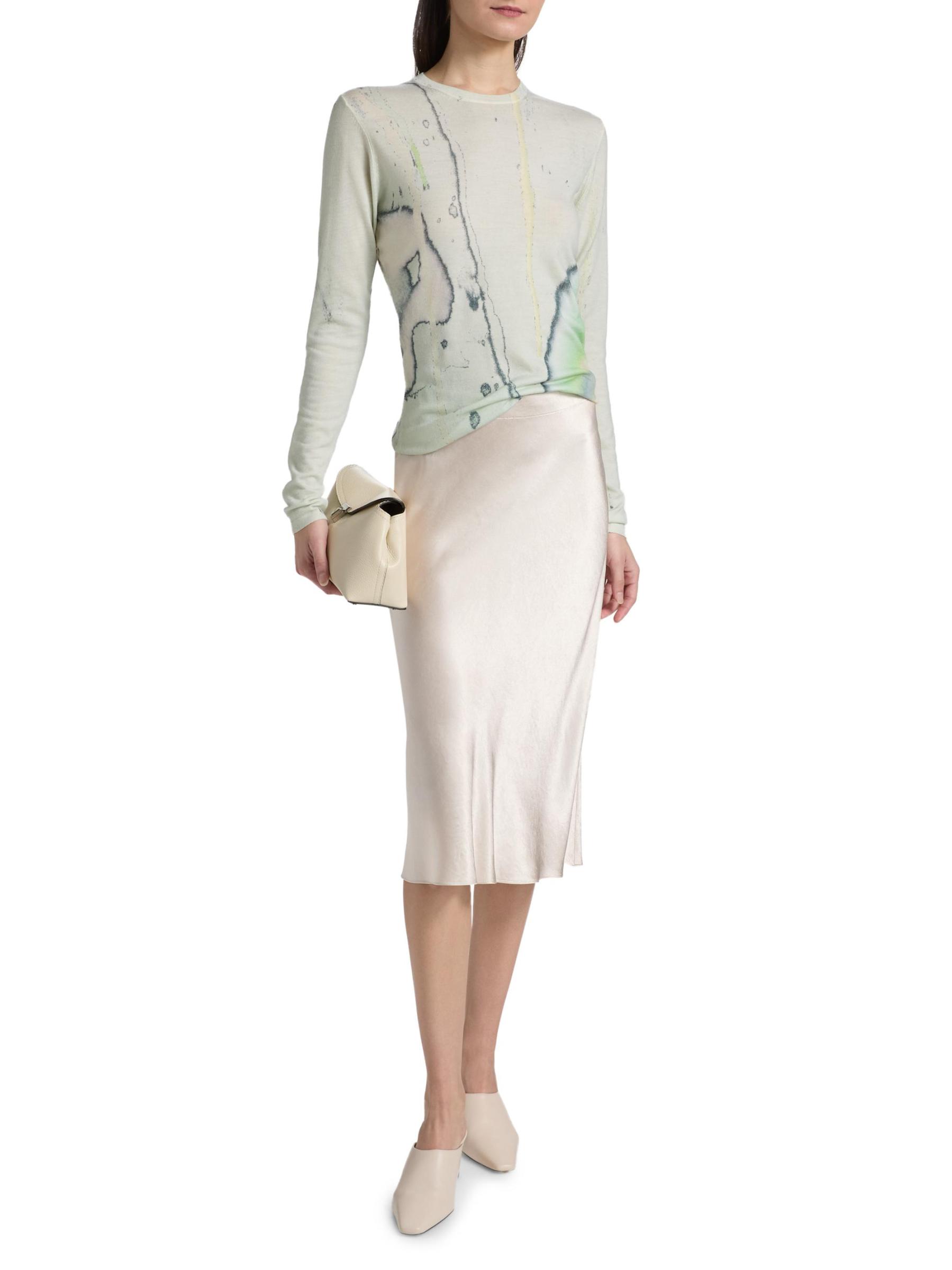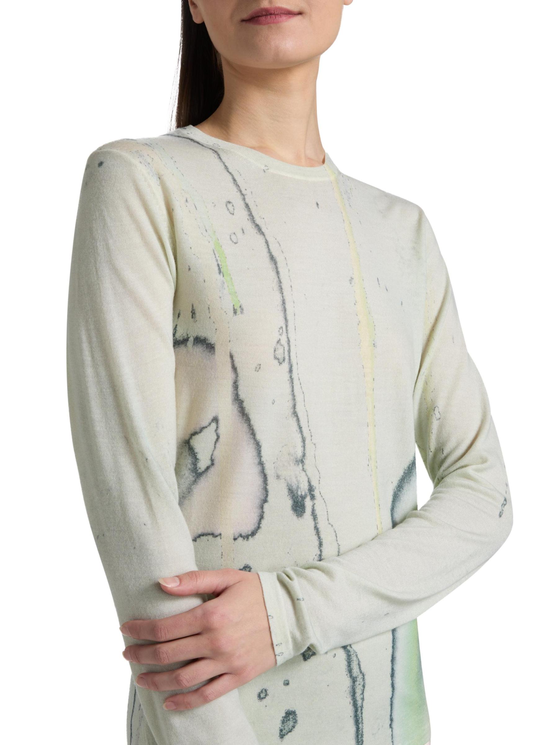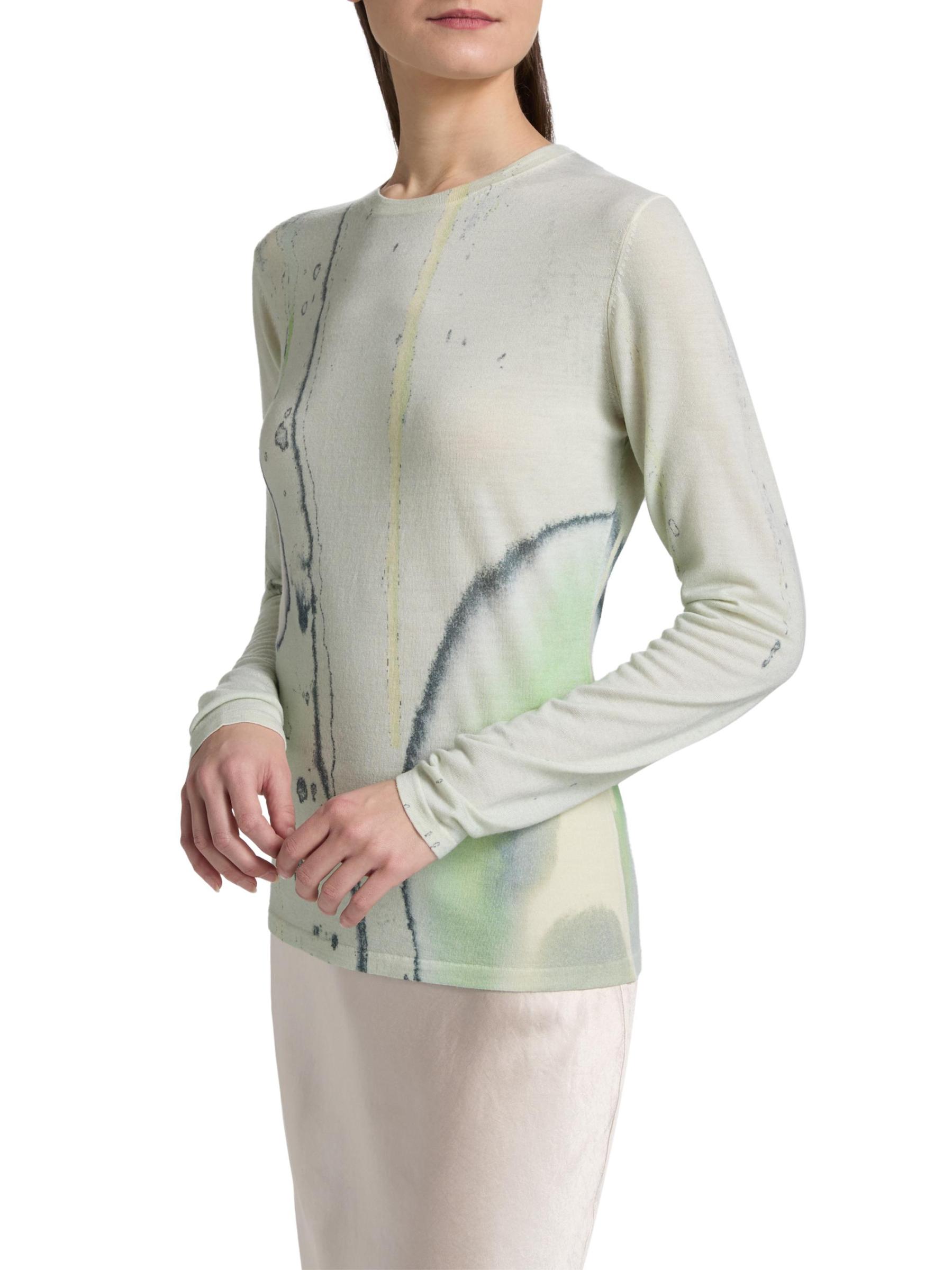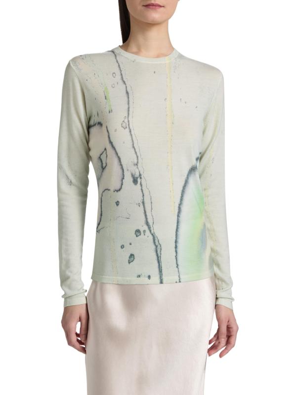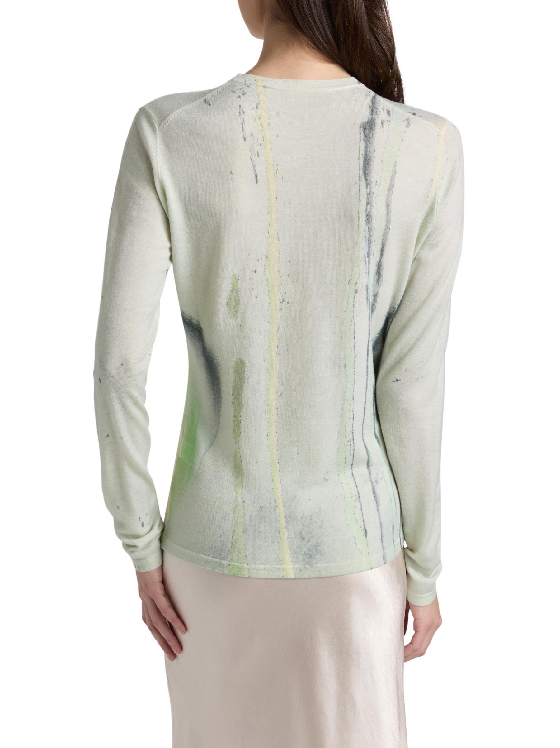 تتميز هذه السترة ذات المقاس النحيف ذات الرقبة المستديرة من مجموعة Jason Wu، المصنوعة من خيوط صوف الميرينو فائقة الدقة، بتصميم زهري بألوان الباستيل الهادئة.