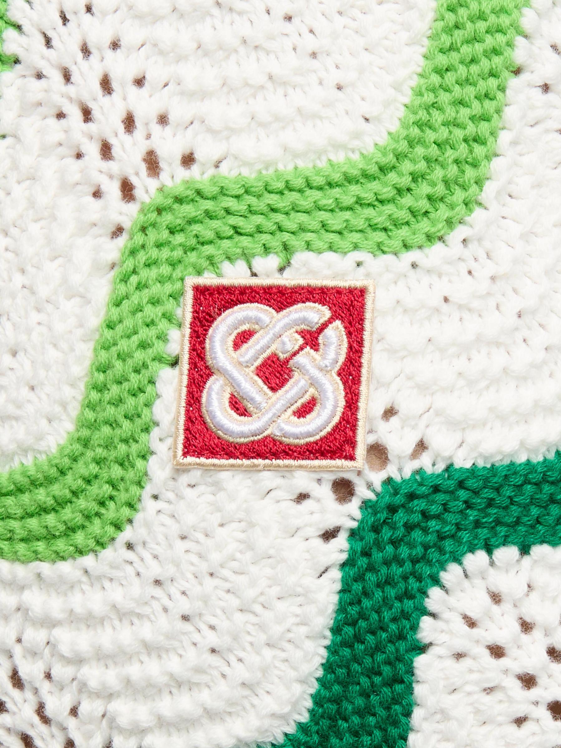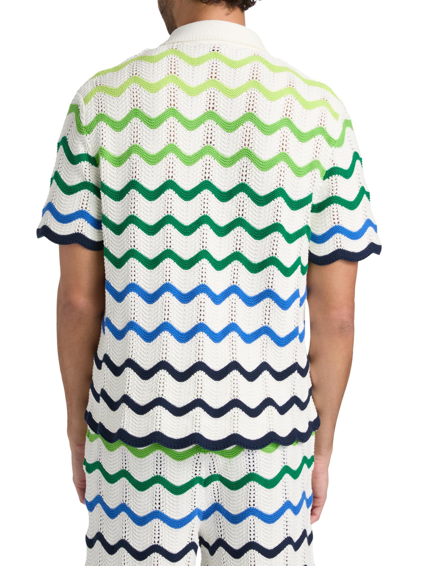 يتميز هذا القميص المحبوك من الدار البيضاء، المصنوع من القطن، بتصميم على شكل موجة مزين بتفاصيل مزخرفة للحصول على لمسة نهائية جرافيكية.