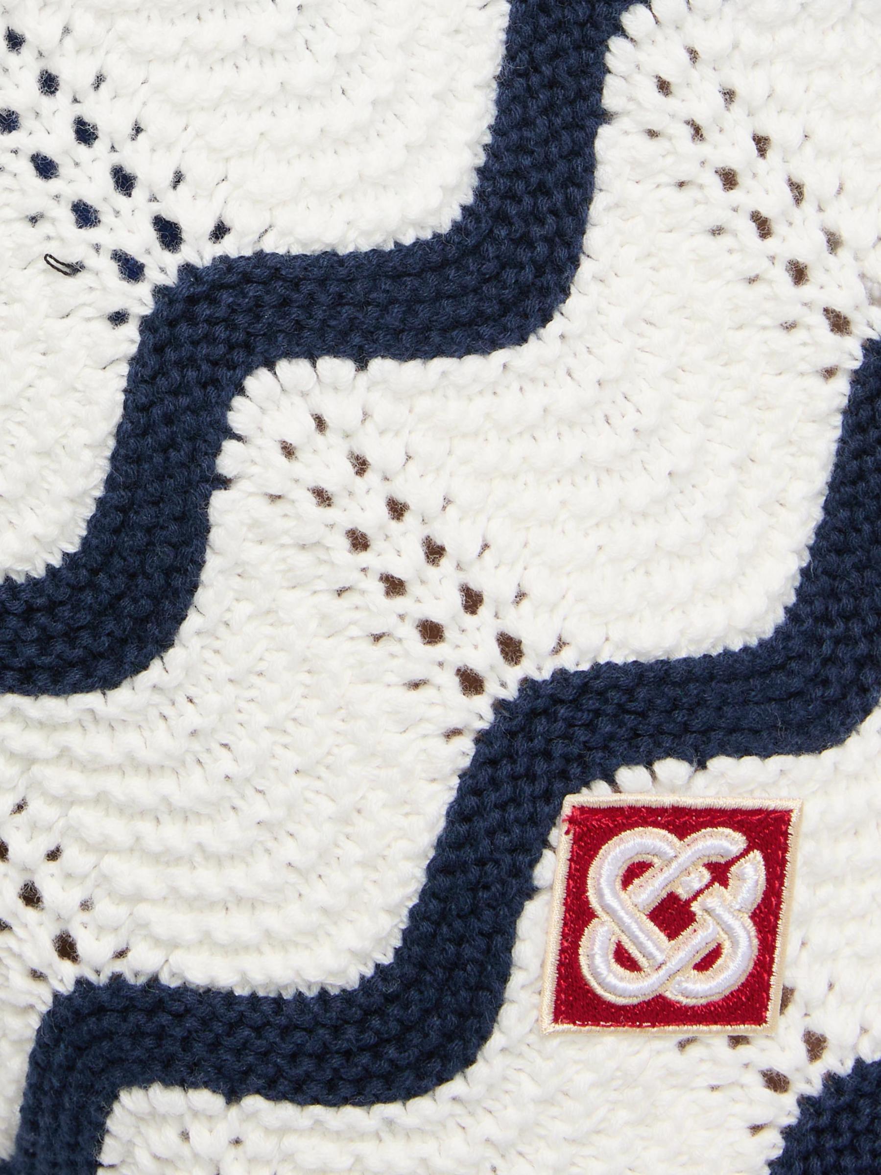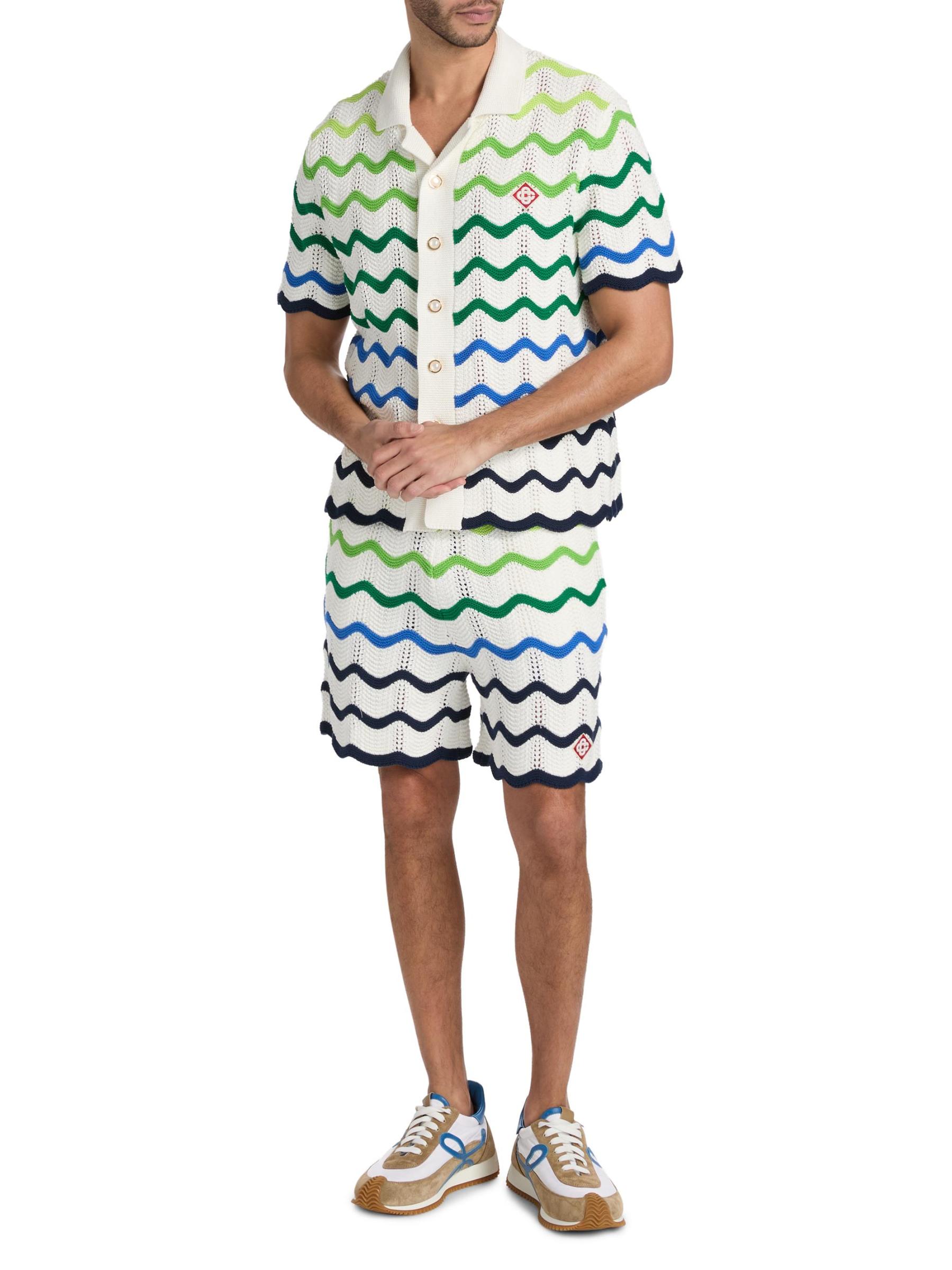 يتميز شورت Wave Knit المصنوع من القطن من الدار البيضاء بنمط مموج مميز متعدد الألوان وشعار مونوغرام مطرز على الحافة.