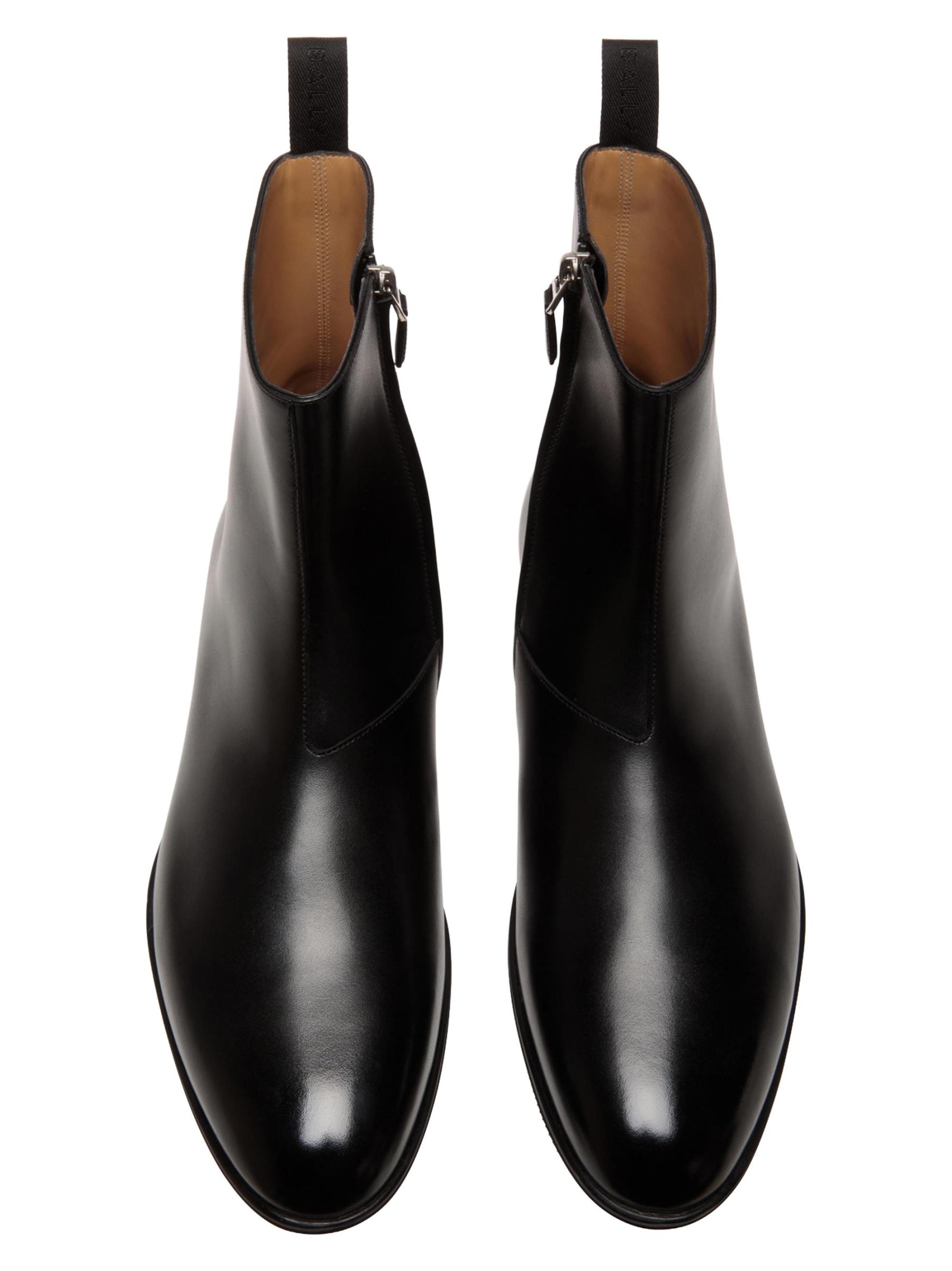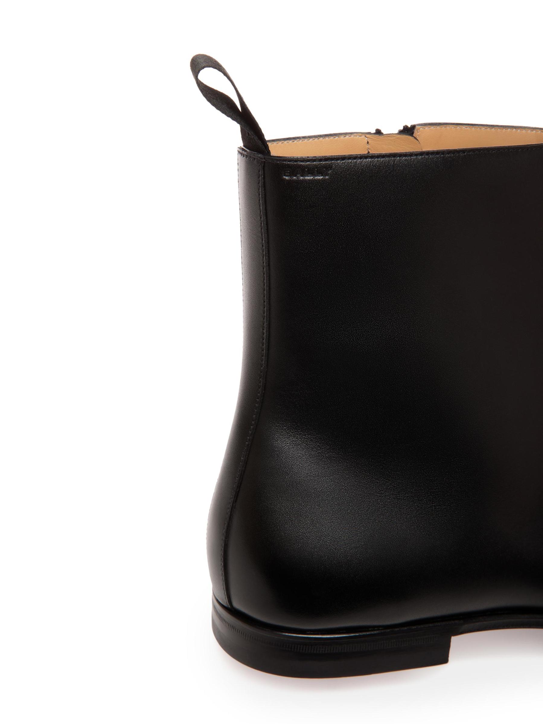من مجموعة Westminster. صُنعت أحذية Wently من Bally من الجلد الناعم، وتتميز بعلامات سحب تحمل العلامة التجارية ونعال جلدية محقونة وشعارات منقوشة على الياقة الجانبية.إصبع اللوز إغلاق بسحّاب جانبي الجزء العلوي مصنوع من الجلد نعل جلدي صُنع في سويسرا