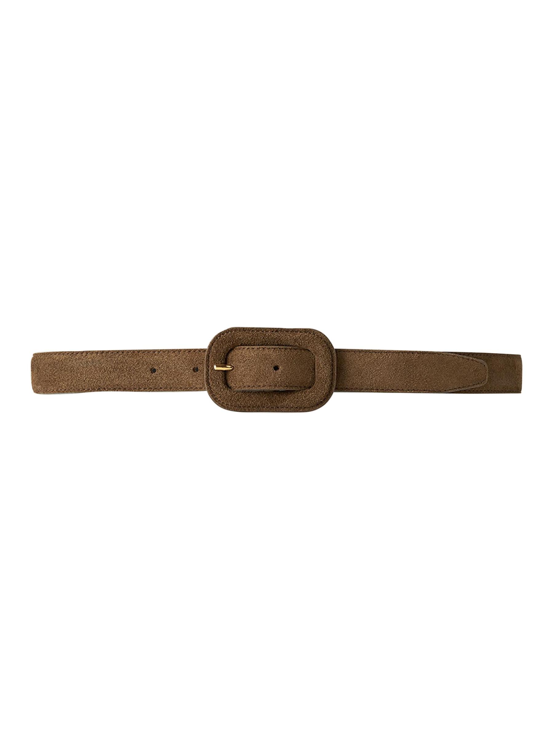 صُنع حزام Toteme في إيطاليا من الجلد المدبوغ الناعم ومصمم بإبزيم عريض.قطع ذهبية إغلاق بمشبك جلد سويدي صُنع في إيطاليا