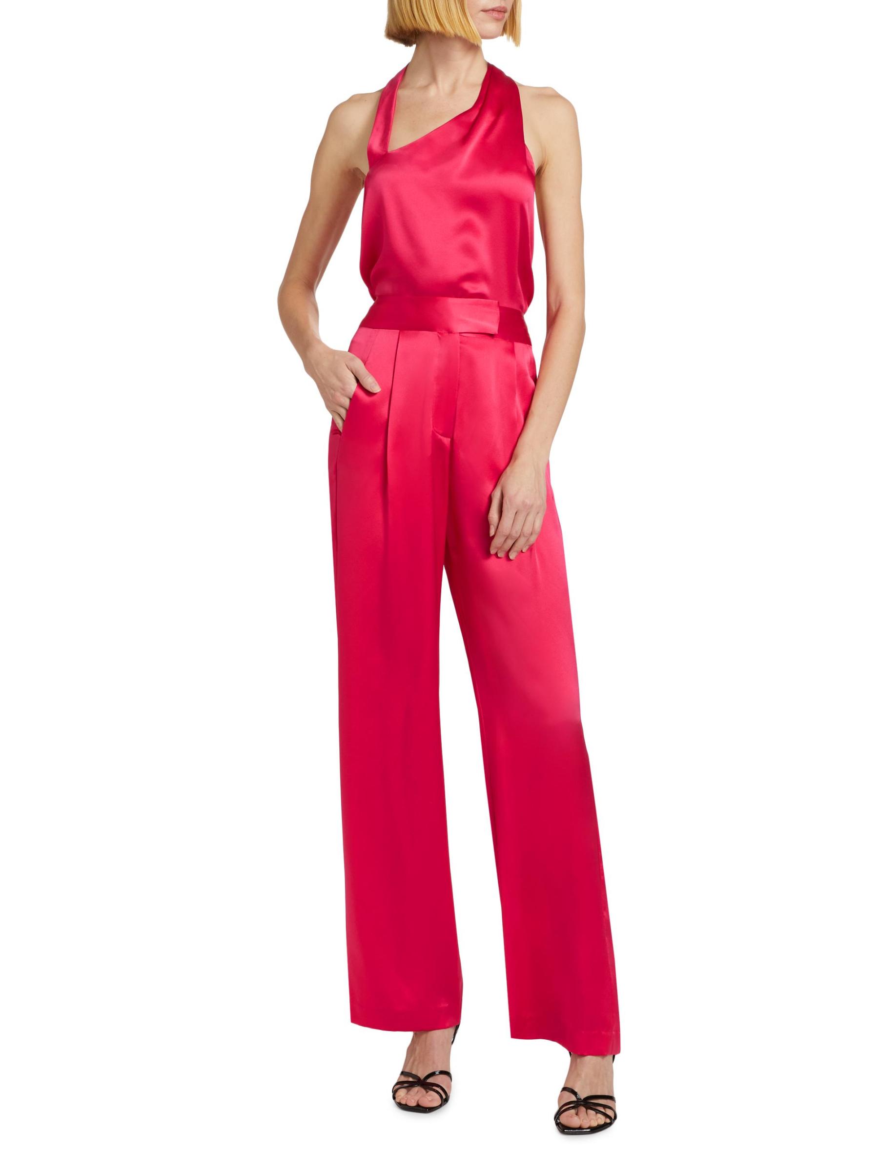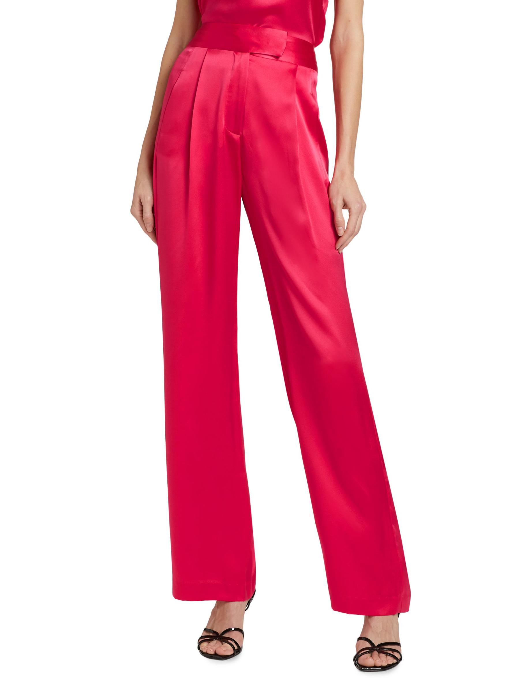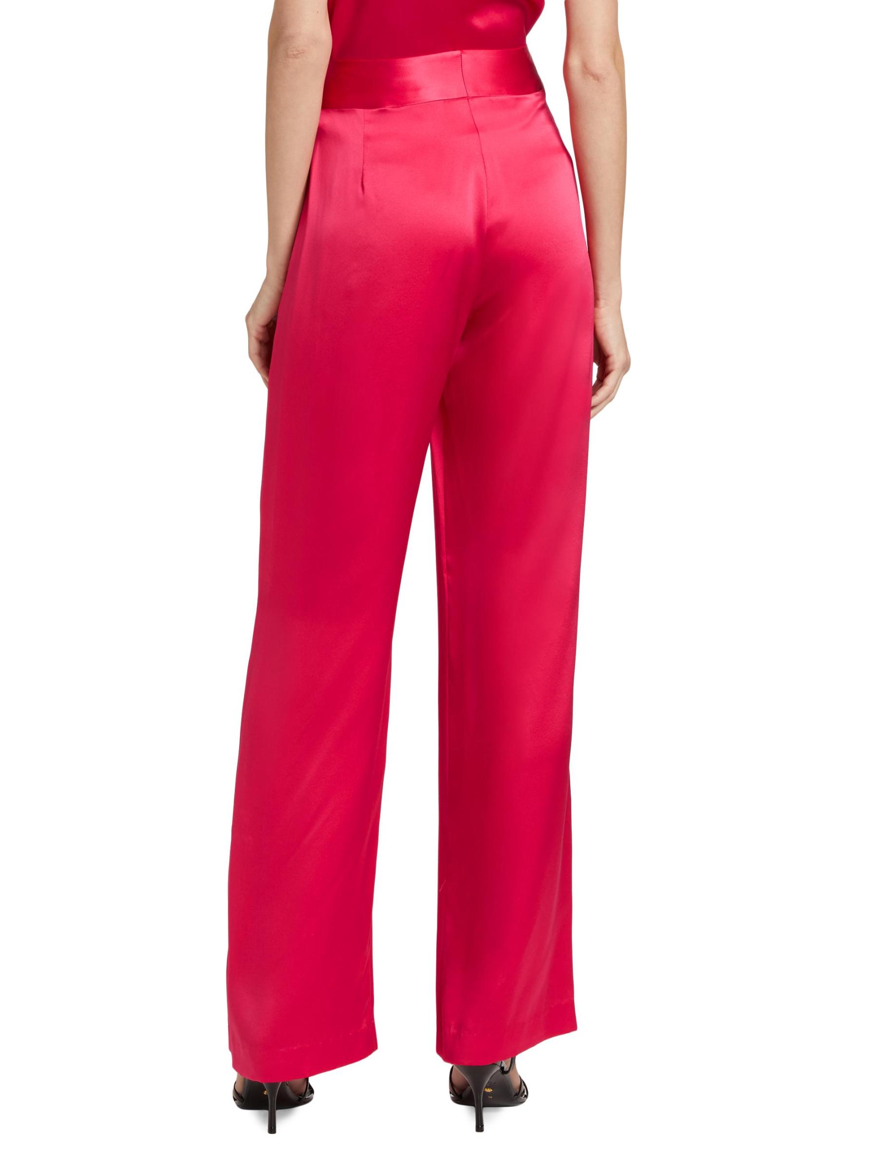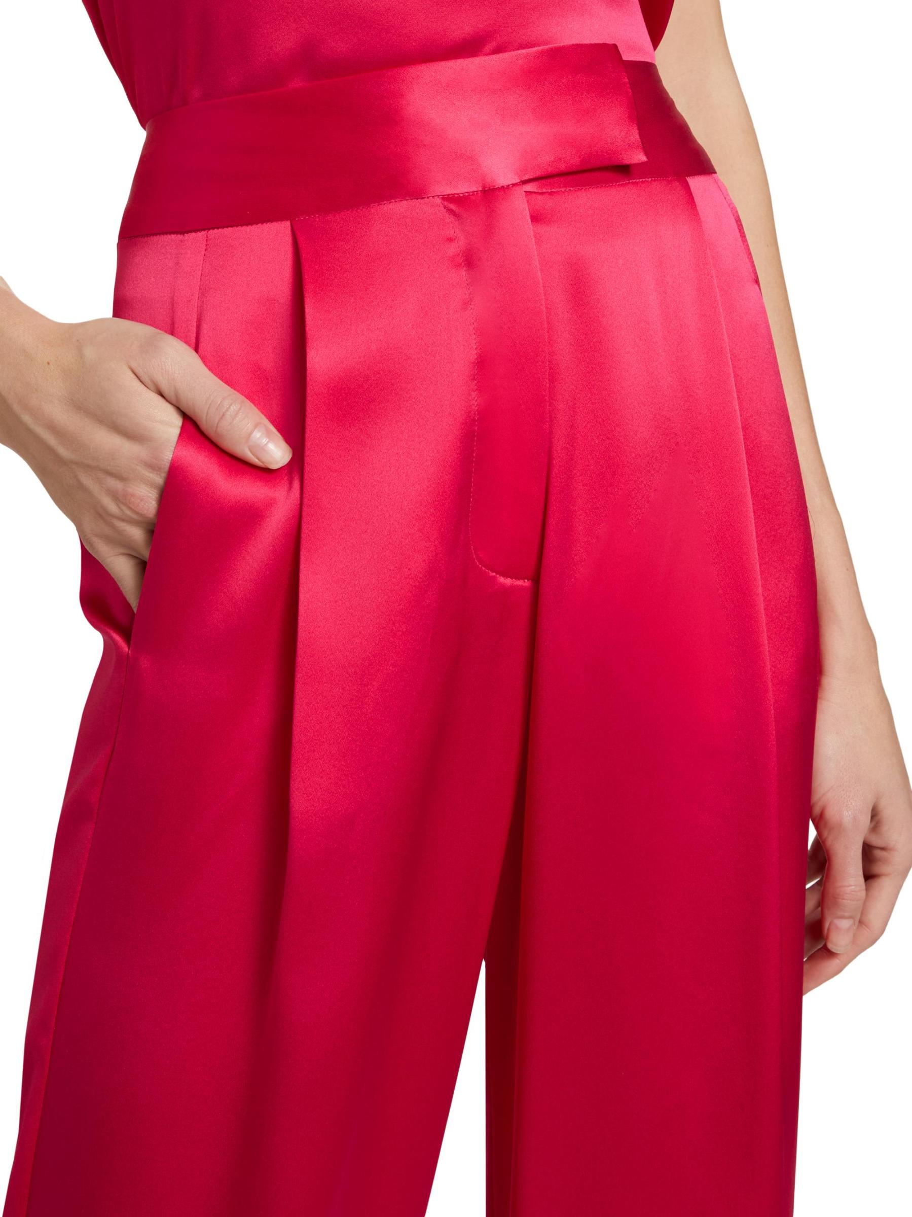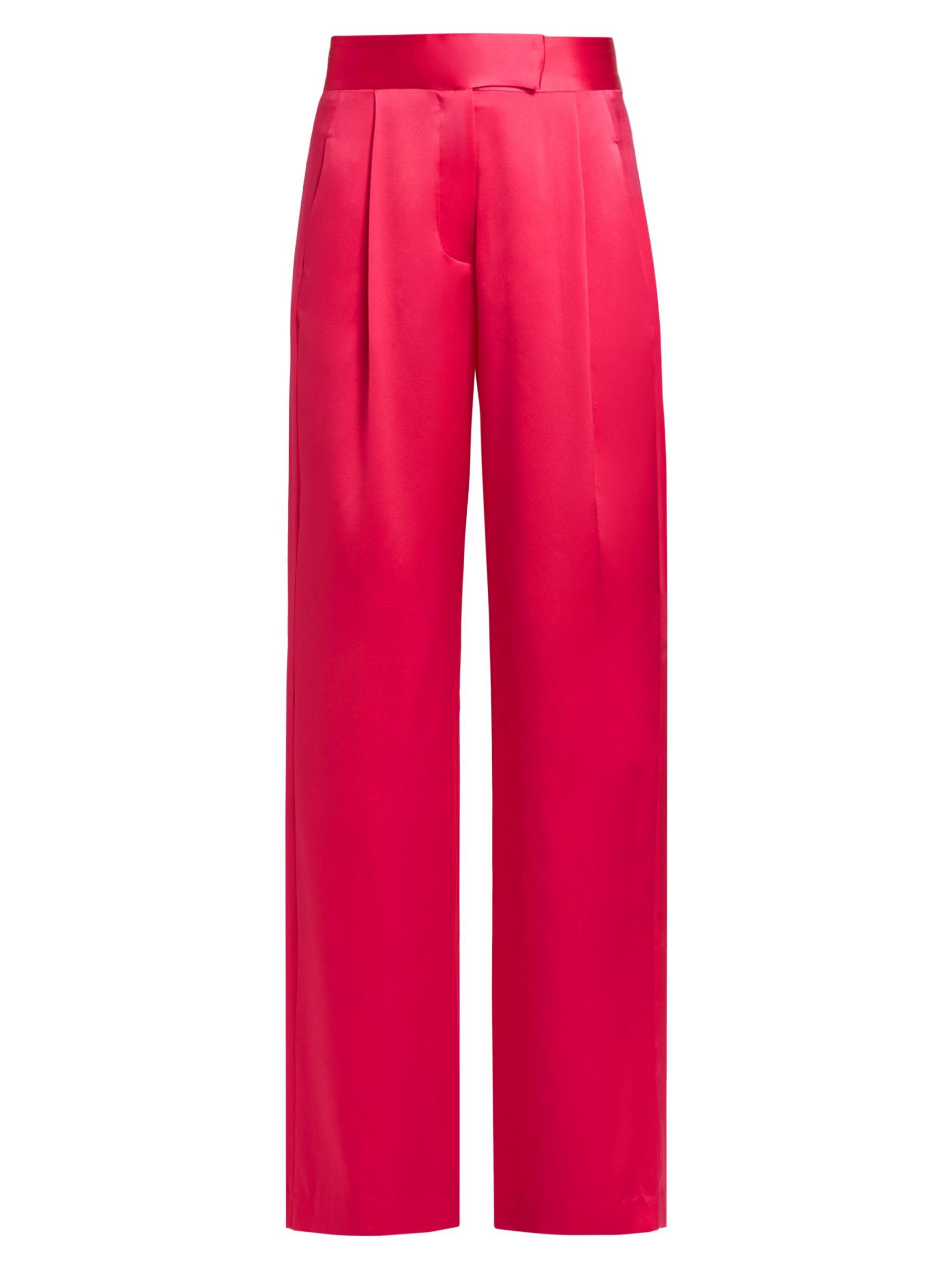 تتميّز هذه السراويل المصنوعة من الحرير الناعم بلمسة نهائية شديدة اللمعان بتصميم ثنيات واسع الساق.