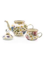 طقم إبريق شاي وأكواب شاي من قطعتين مطلي بالمينا من وايلد فلاورز