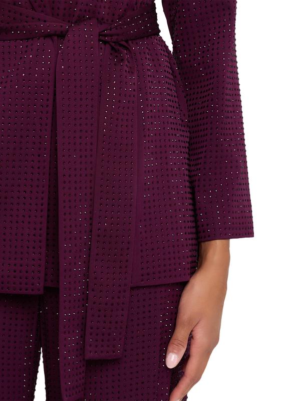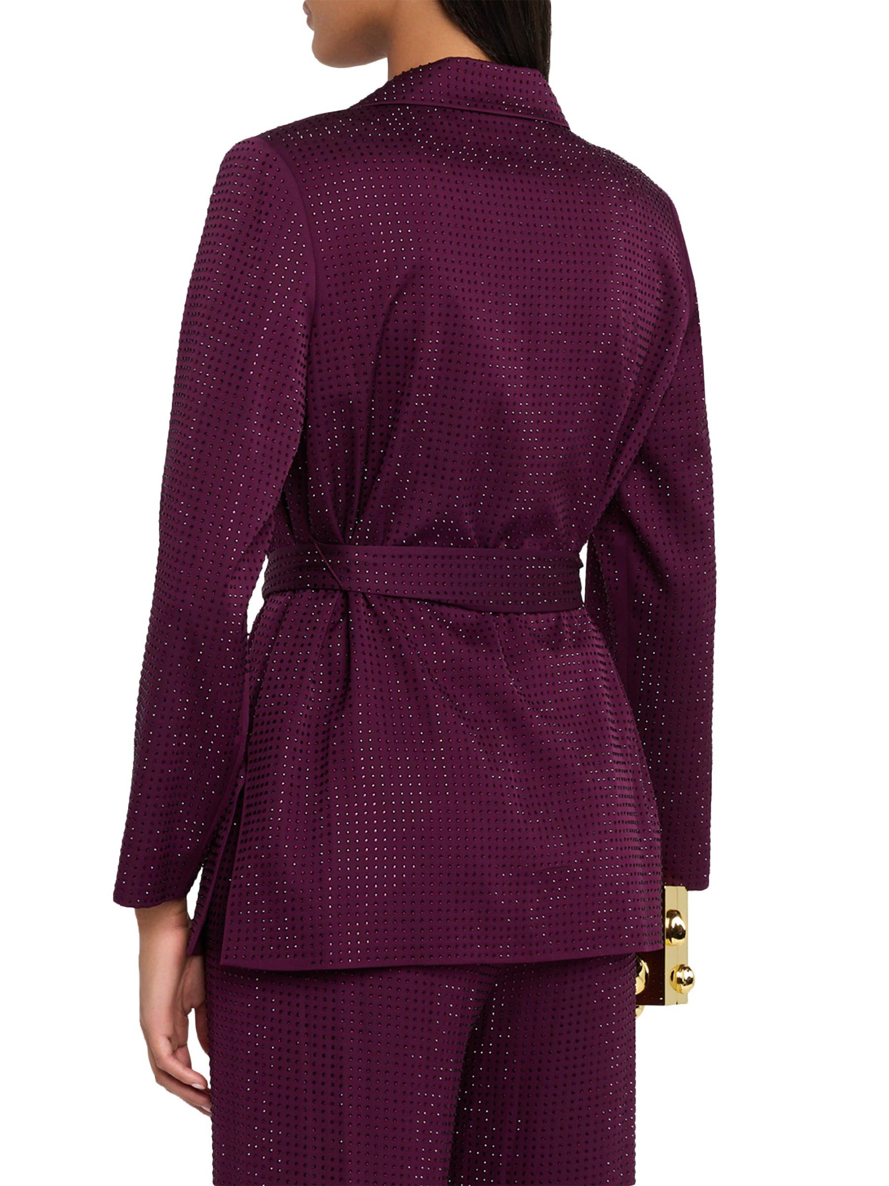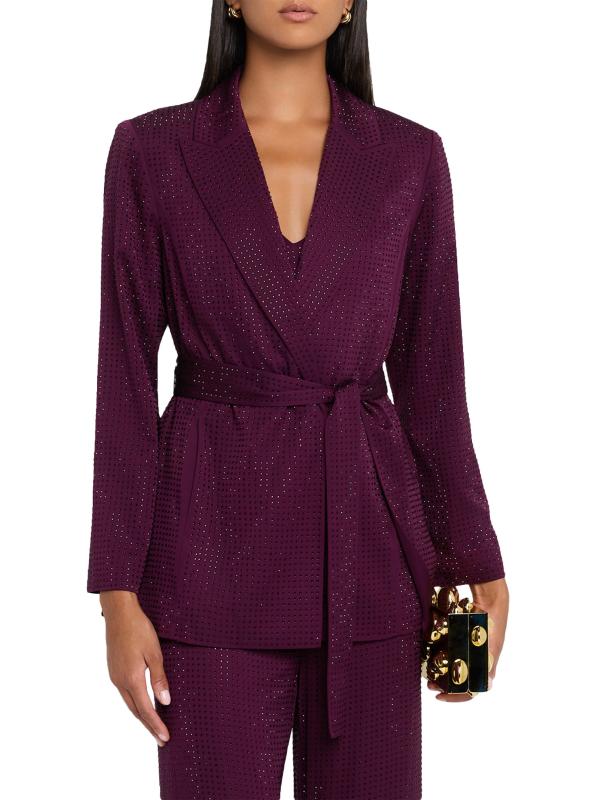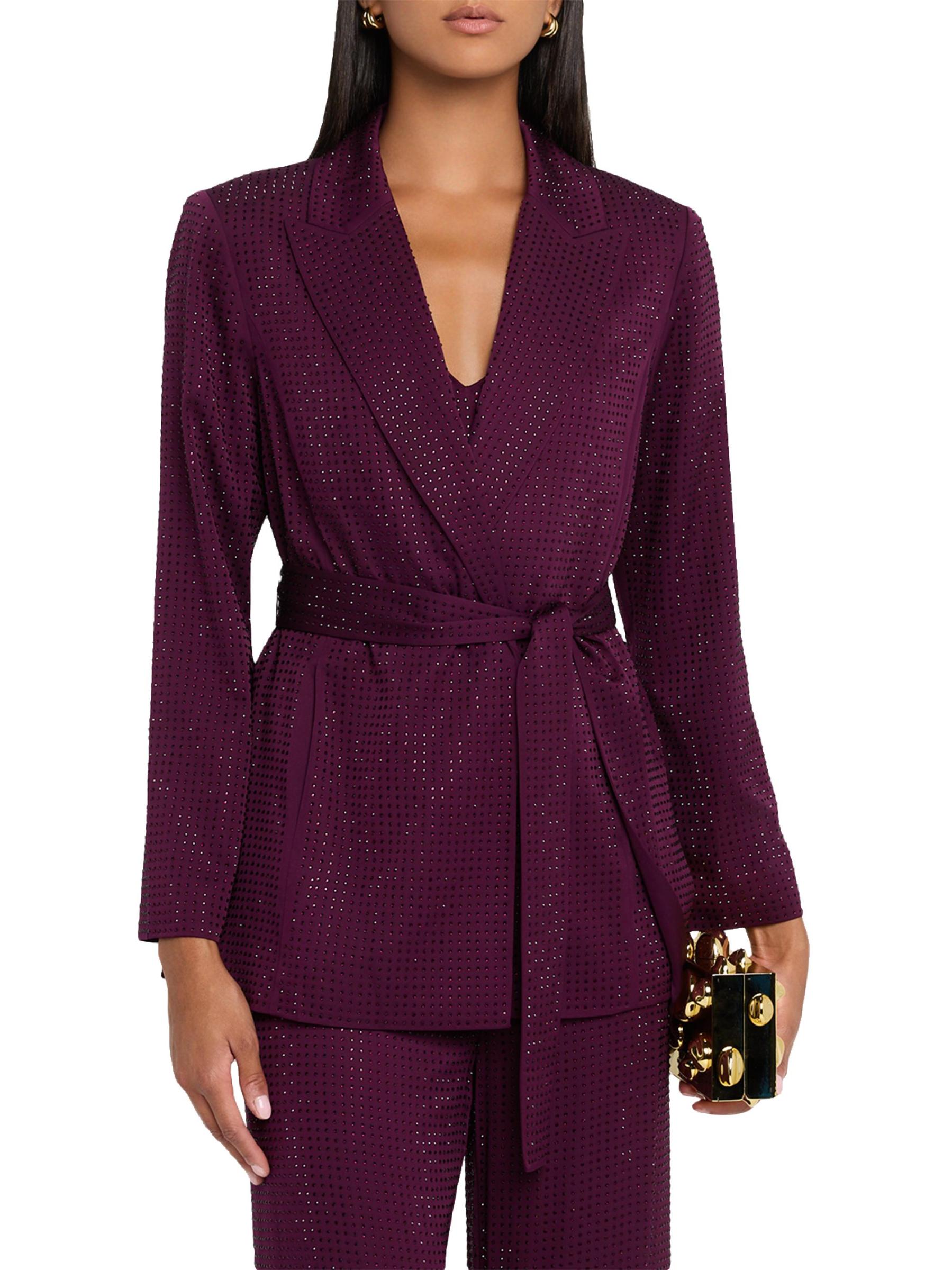 جاكيت Willow مزدوج الصدر من Ungaro مصنوع من الحرير المرن ومزين بكريستالات Hotfix، وهو مزين بثنيات مدببة وحزام قابل للربط.