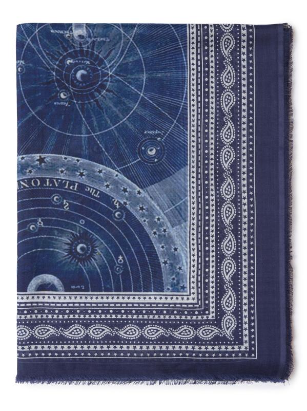 صُنع وشاح Wind من Faliero Sarti من الحرير الإيطالي بطبعة جرافيكية وحاشية ذات حافة خام.حرير تنظيف جاف صُنع في إيطاليا