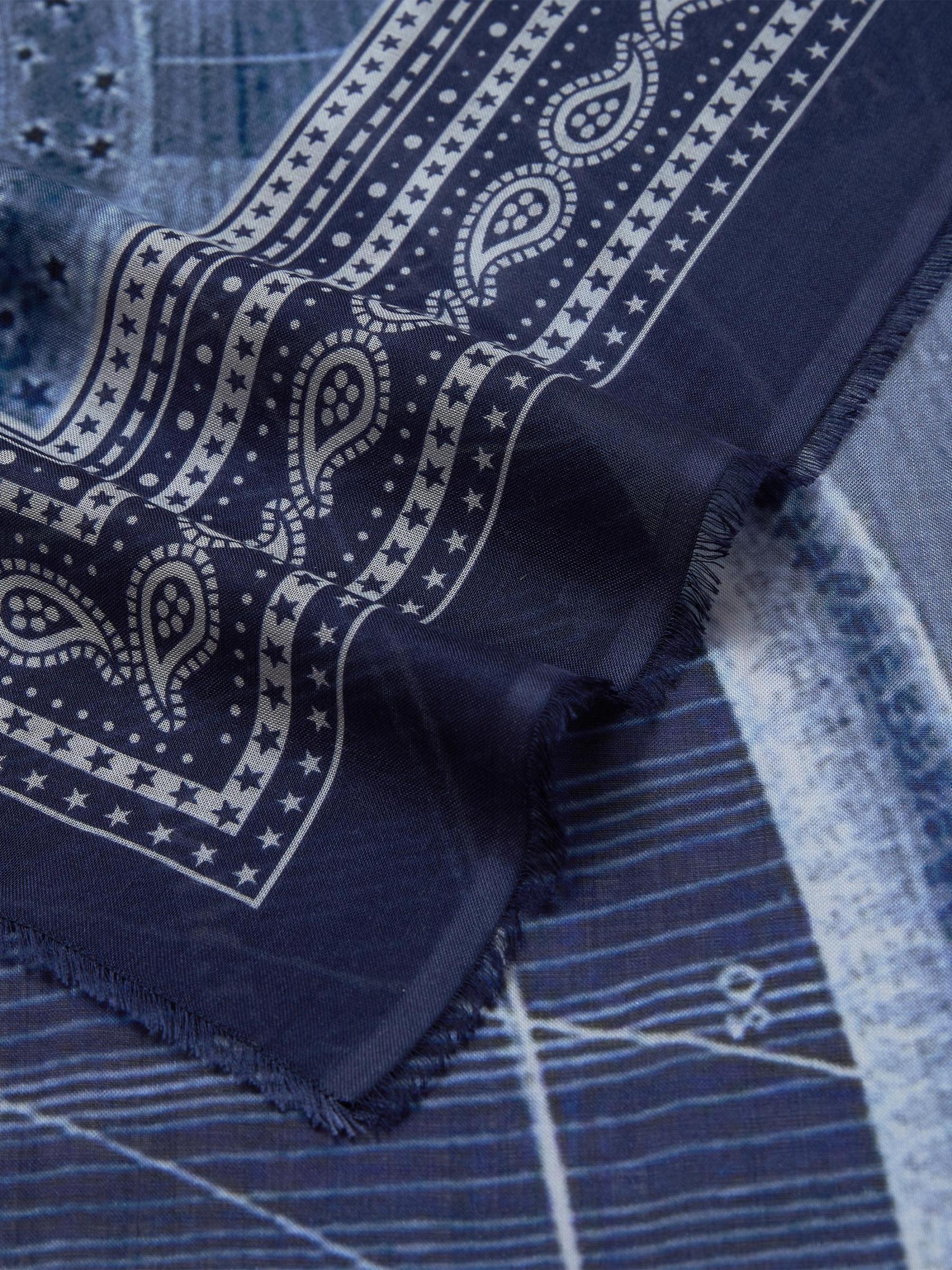 صُنع وشاح Wind من Faliero Sarti من الحرير الإيطالي بطبعة جرافيكية وحاشية ذات حافة خام.