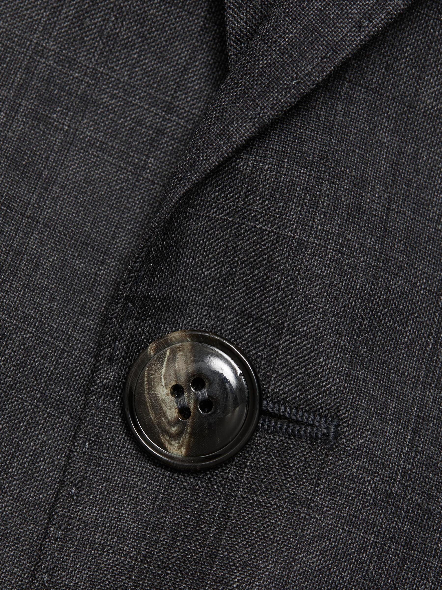 تتميّز هذه السترة المصنوعة من الصوف من جورجيو أرماني بنقشة زجاج النافذة وتصميم وحيد الصدر. يُضفي هذا التصميم لمسة نهائية على شكل طية صدر مشدودة وزرين للإغلاق. مصنوع من الصوف البكر بنسبة 100%. تنظيف جاف. صُنع في إيطاليا.