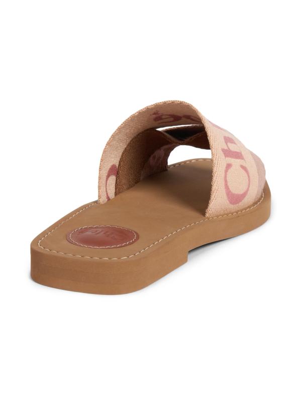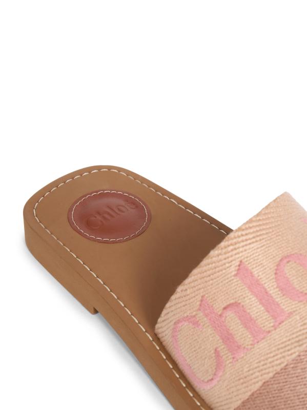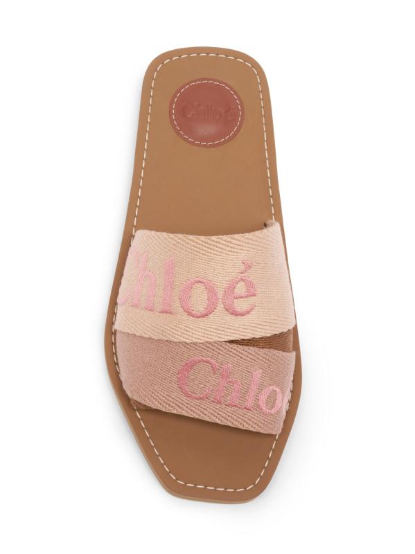 يتميز صندل Chloé Woody بجزء علوي من الشريط المصنوع من الحرير المزين بتطريز الشعار.