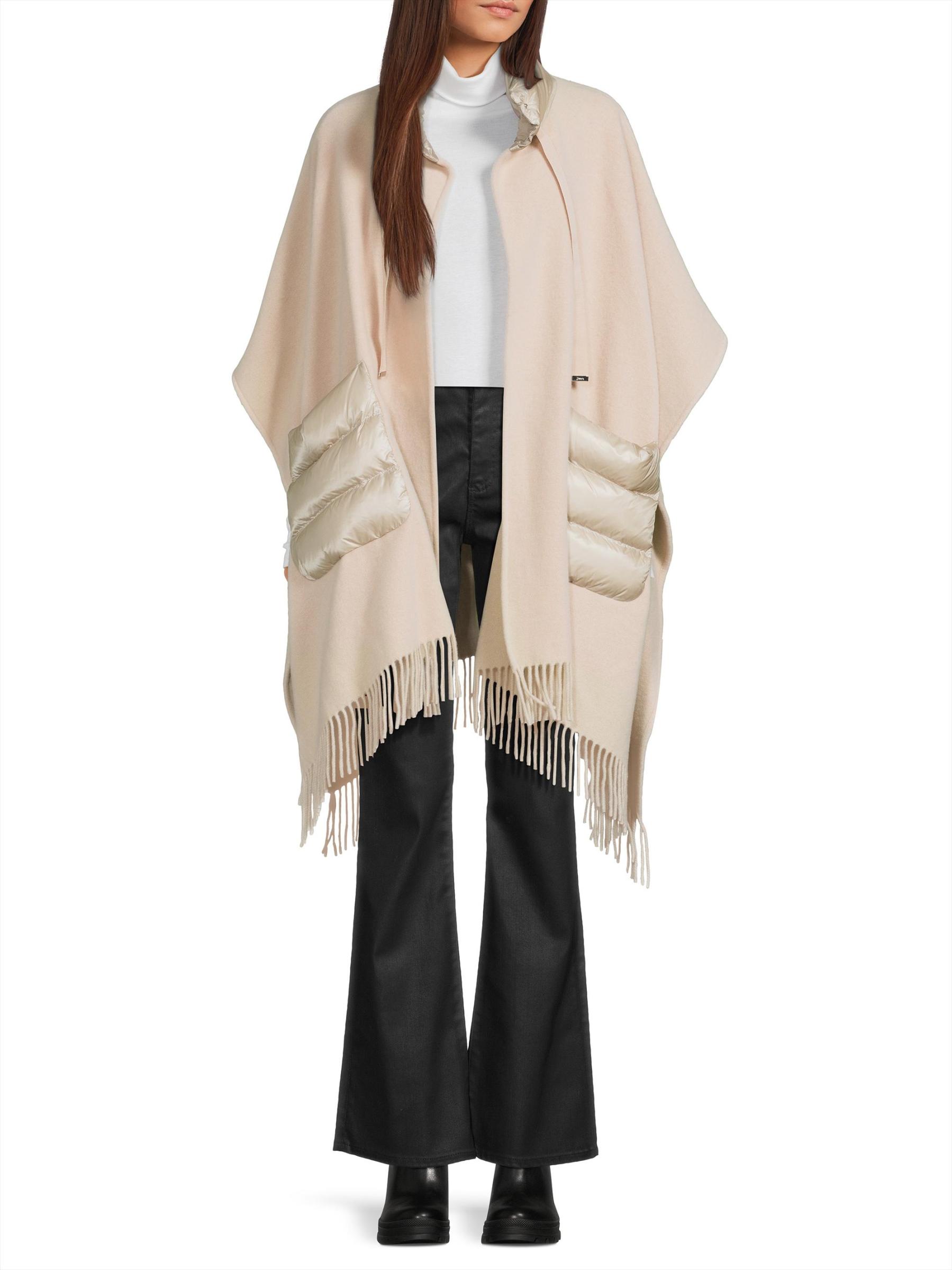 يتميز بونشو هيرنو هذا المصنوع من مزيج الصوف والكشمير بتصميم مفتوح من الأمام مع ياقة مبطنة ومنفوخة وجيوب متناسقة. تقليم هامشي يكمل المظهر.