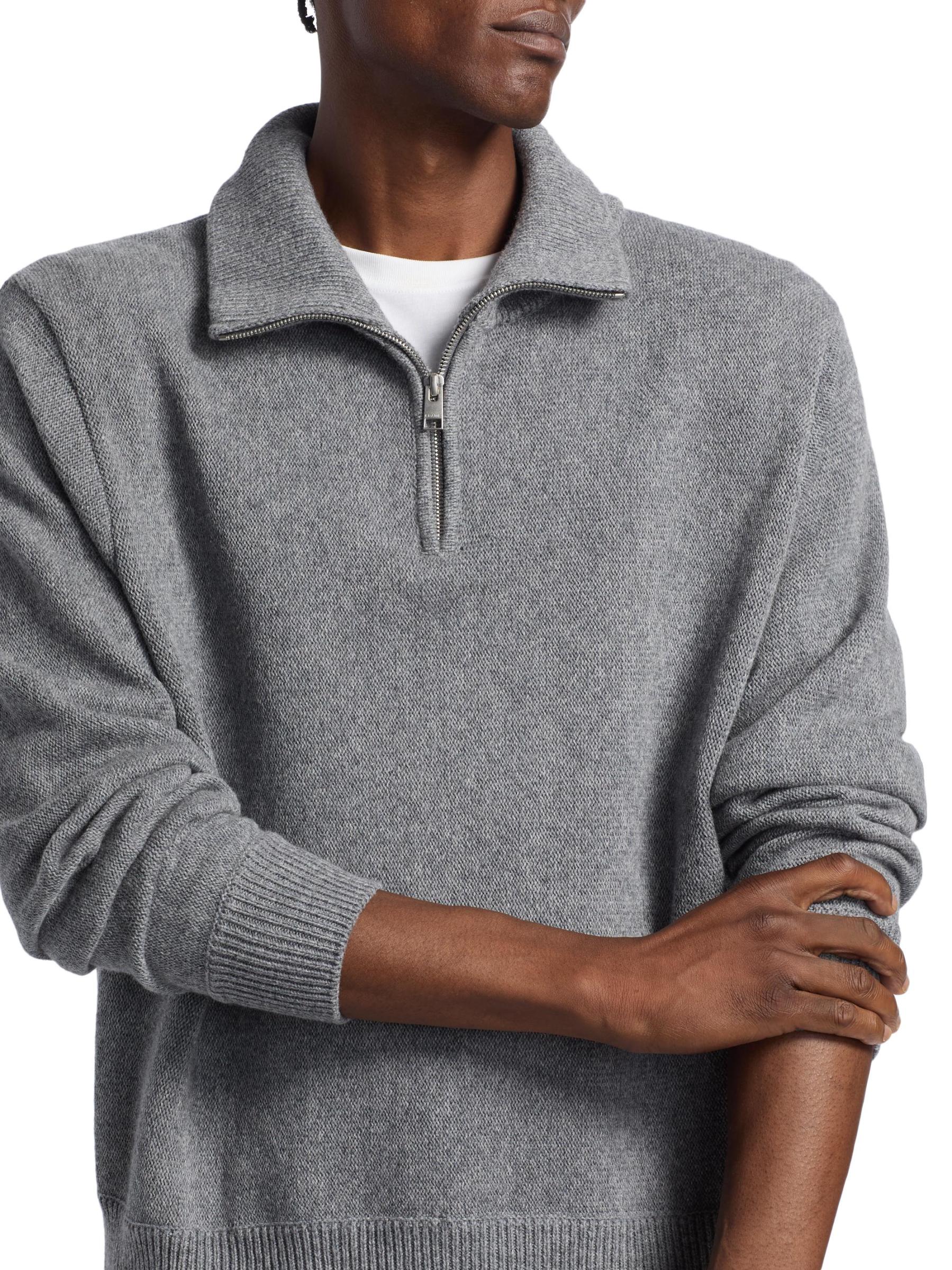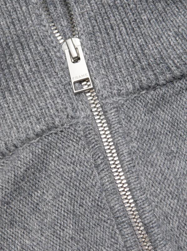 صُنعت سترة فريم هذه من مزيج الصوف والقطن، وهي مُصممة بفتحة بسحّاب رباعي. تضفي الزخرفة المحبوكة على شكل أضلاع بنية إضافية لهذا النمط.