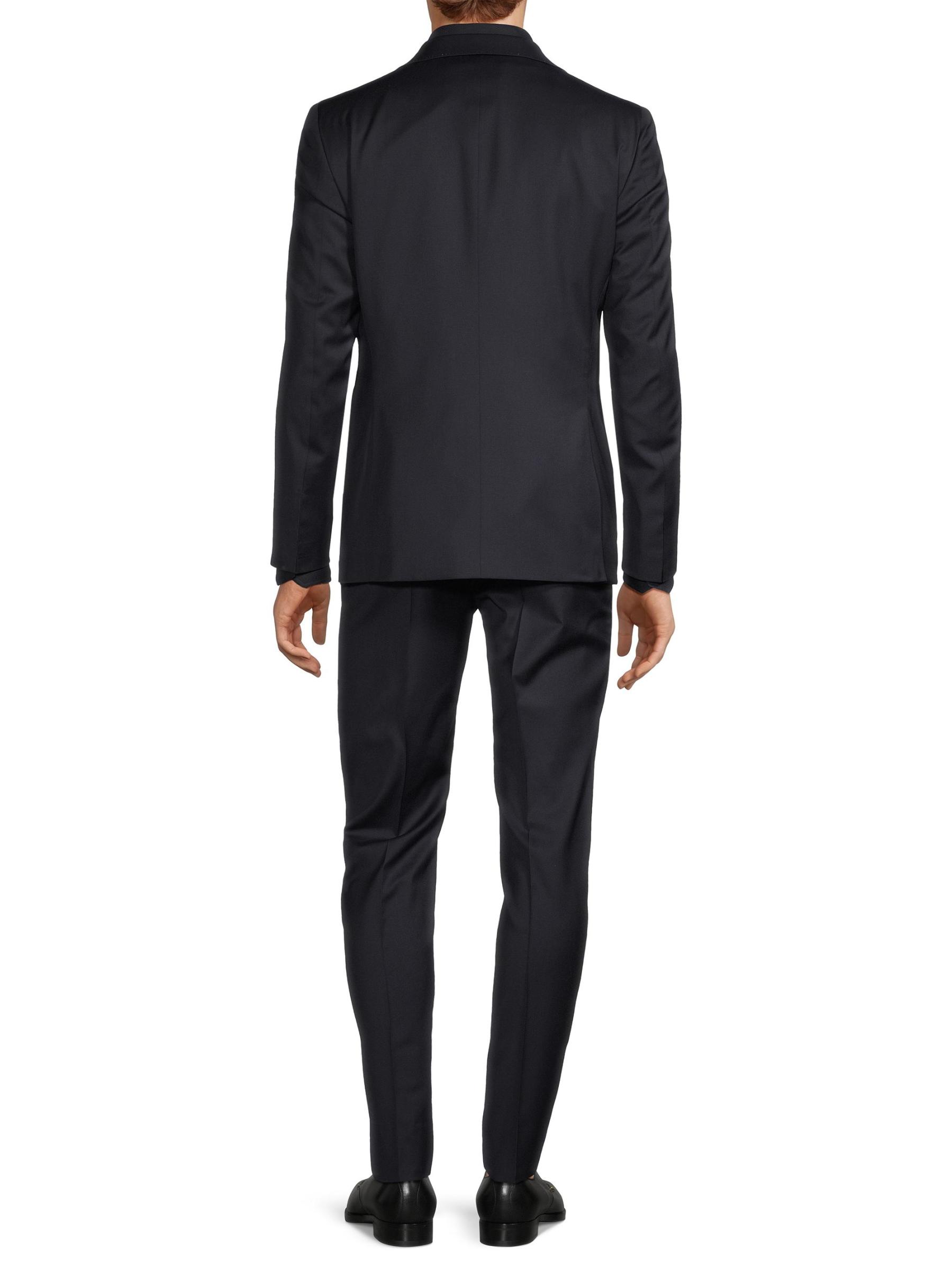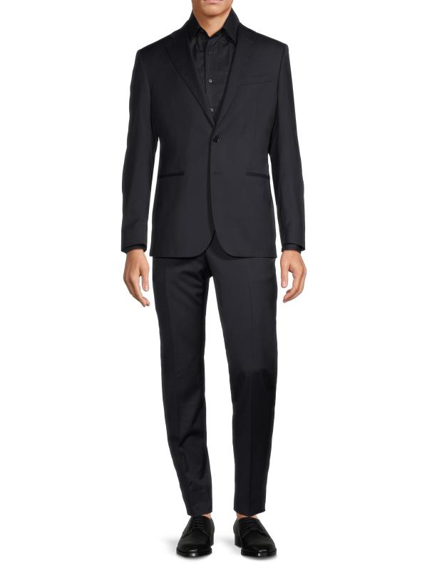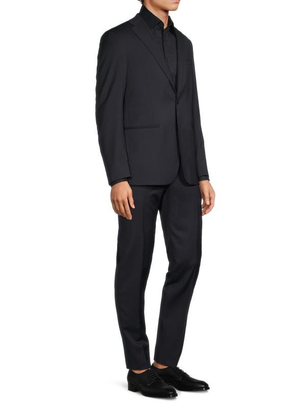 يُضفي هذا التوكسيدو من كورنيلياني، المصنوع من الصوف الفاخر، مظهرًا راقيًا. يتميز الجاكيت المصمّم بطيات مشقوقة مزيّنة بزخرفة كريستالية ملونة. مصنوع من الصوف البكر بنسبة 100%. تنظيف جاف. صُنع في إيطاليا.