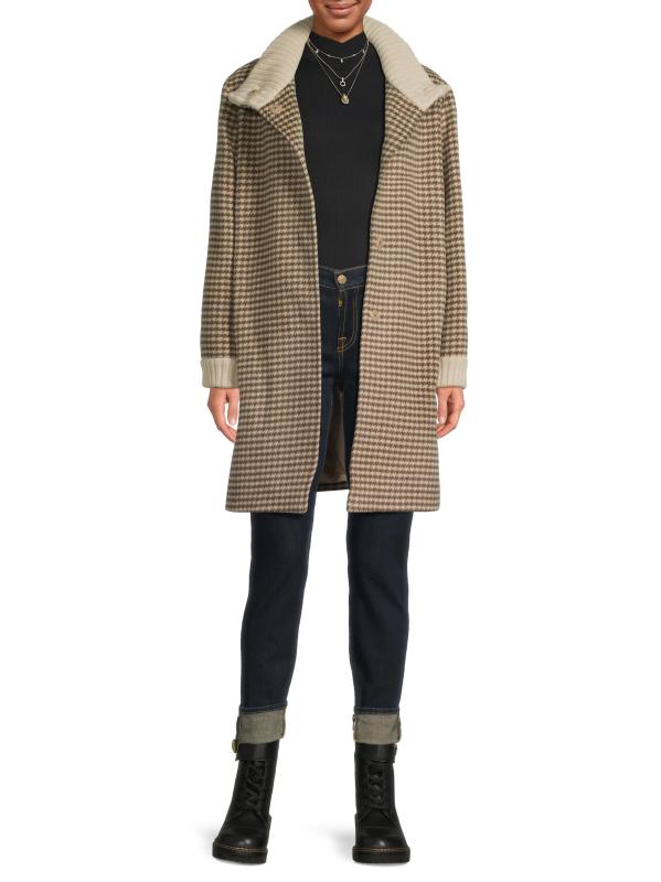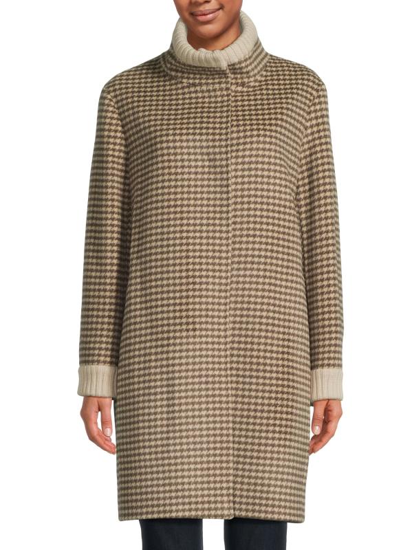 يتميز معطف Cinzia Rocca المصنوع من الصوف بنمط هاوندستوث وغلق داخلي كبس وتقليم محبوك.
