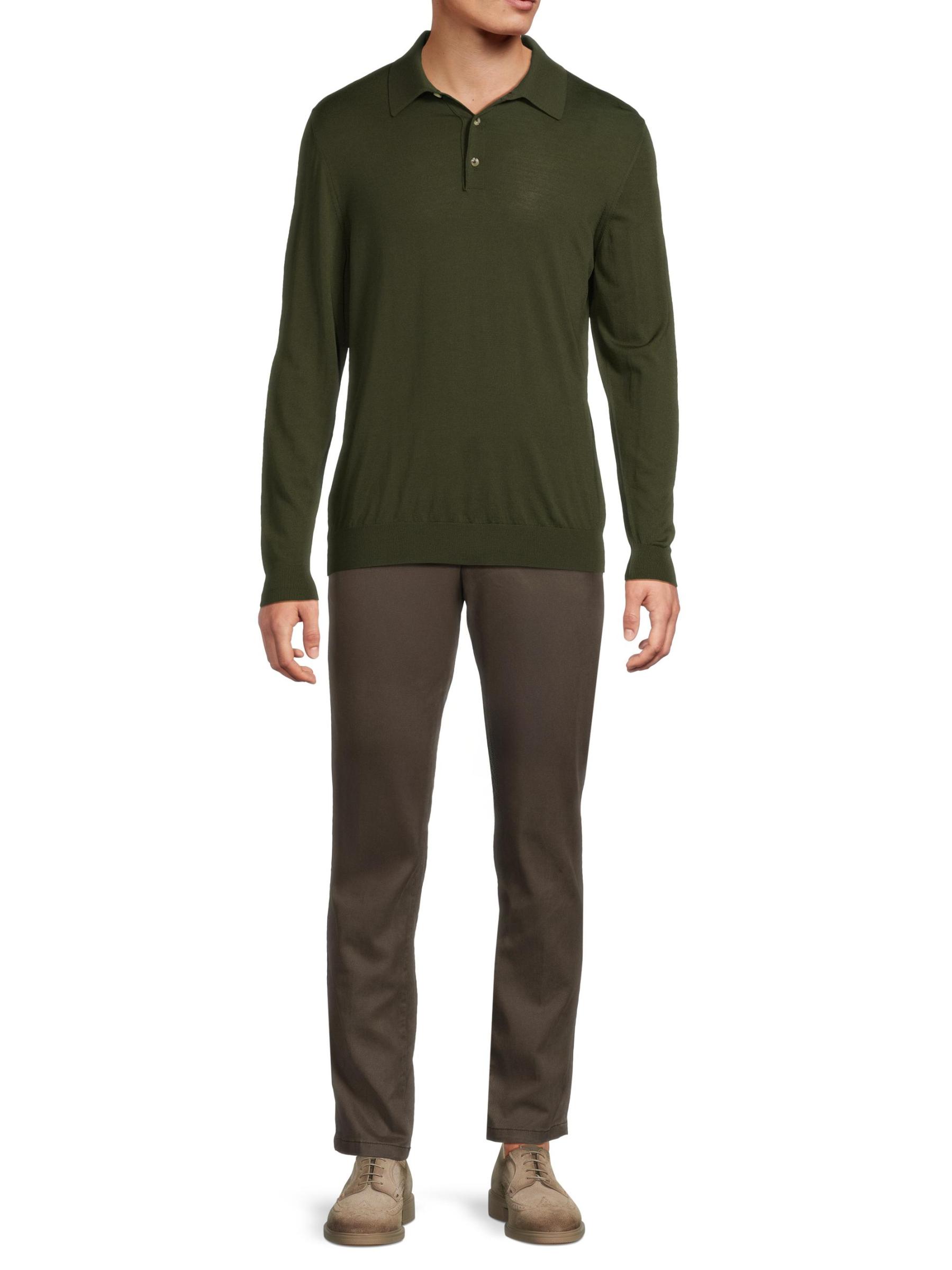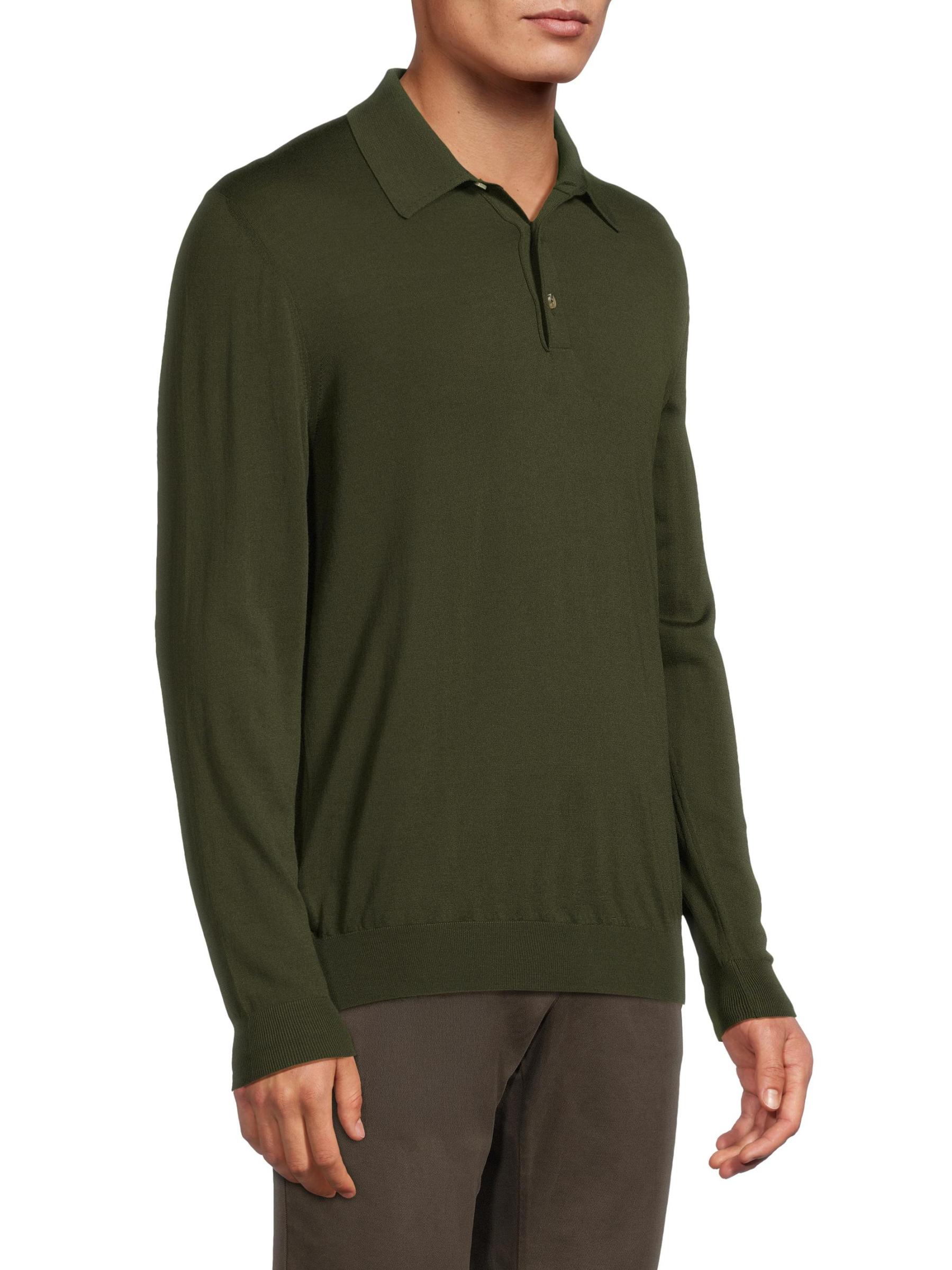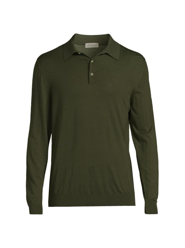 يتميز قميص البولو هذا من Sartorio Napoli، المصنوع من الصوف الإيطالي الفاخر، بمقاس كلاسيكي بأكمام طويلة. يُكمل التصميم ياقة واسعة وفتحة بثلاثة أزرار.