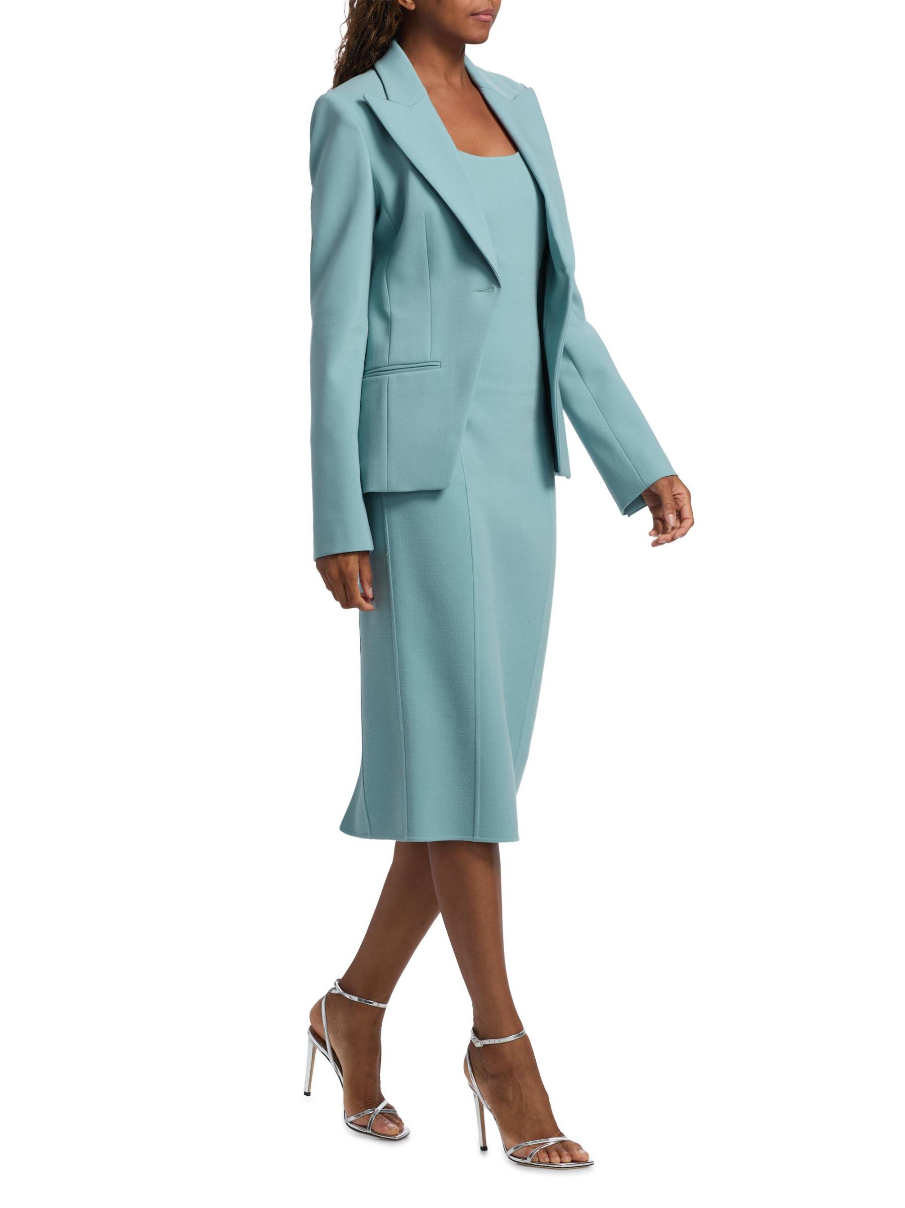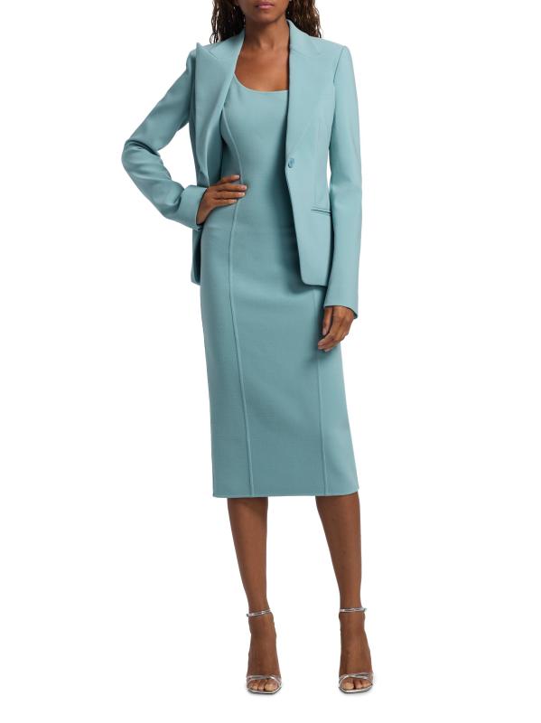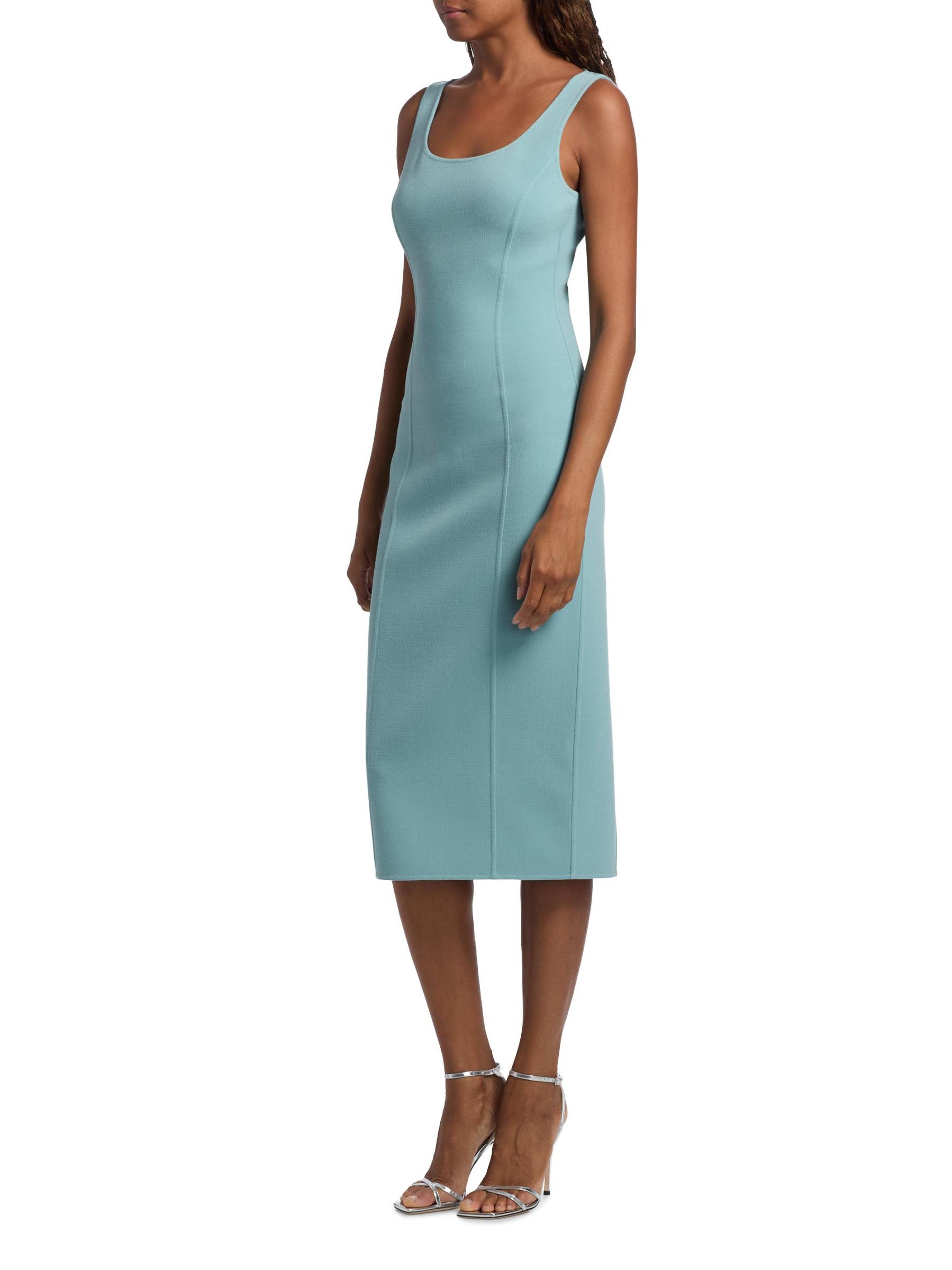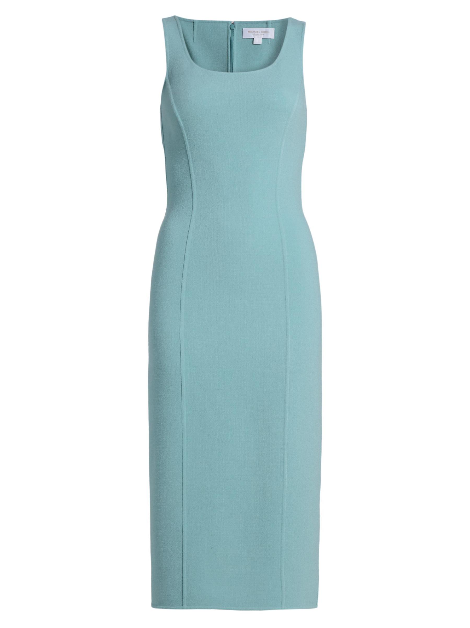 صُنع هذا الفستان المتوسط من الصوف من مجموعة مايكل كورس بتصميم غمد يتميز بتفاصيل درزات مسطحة.