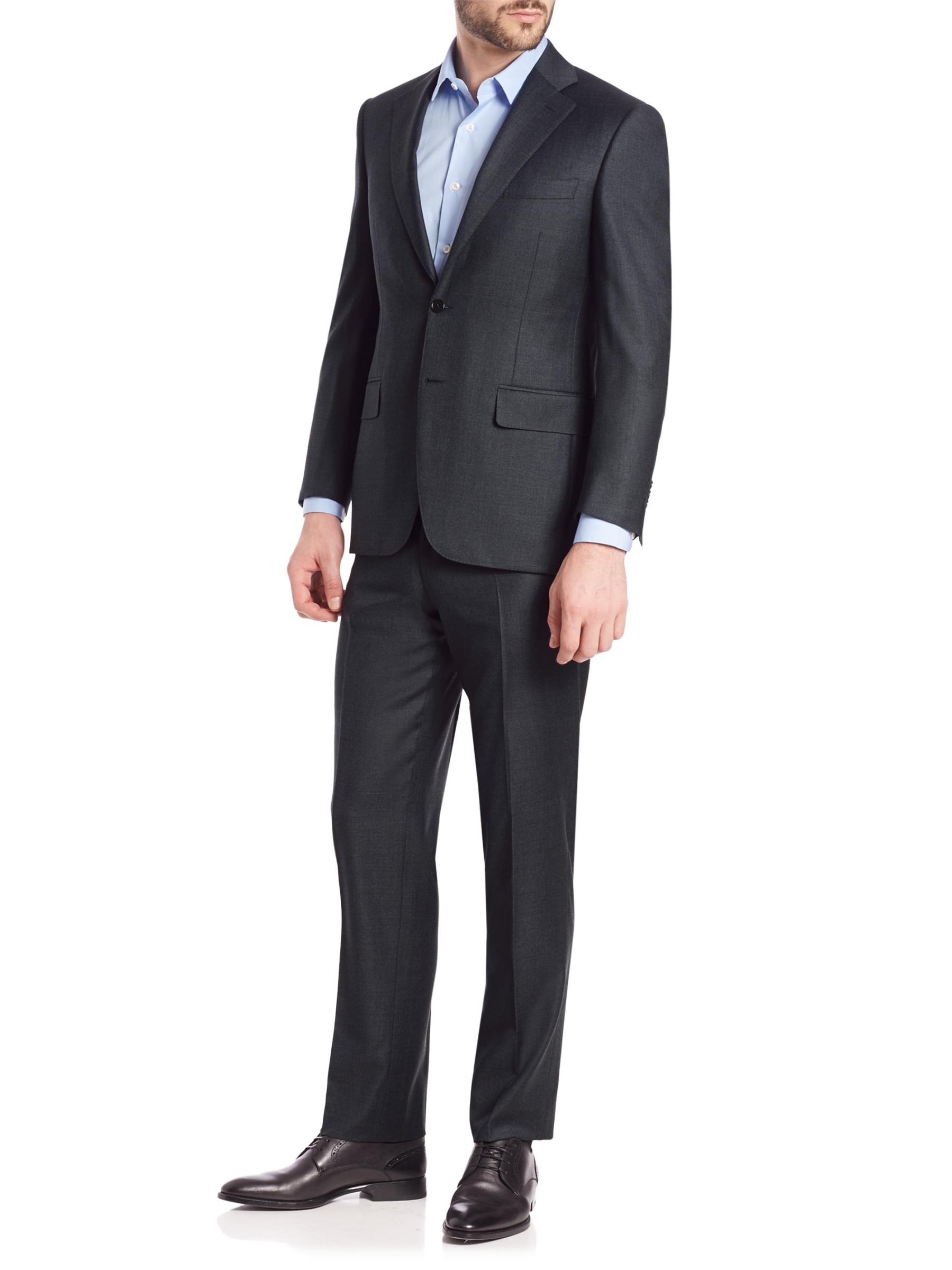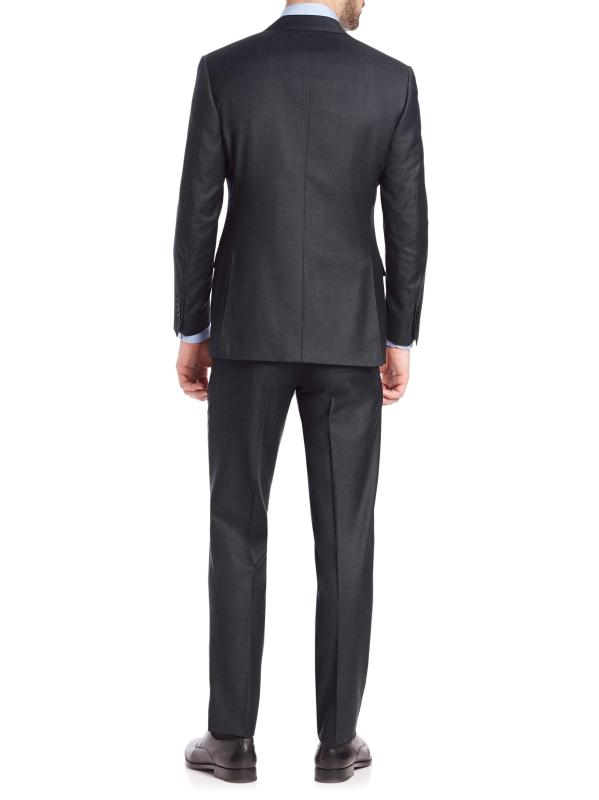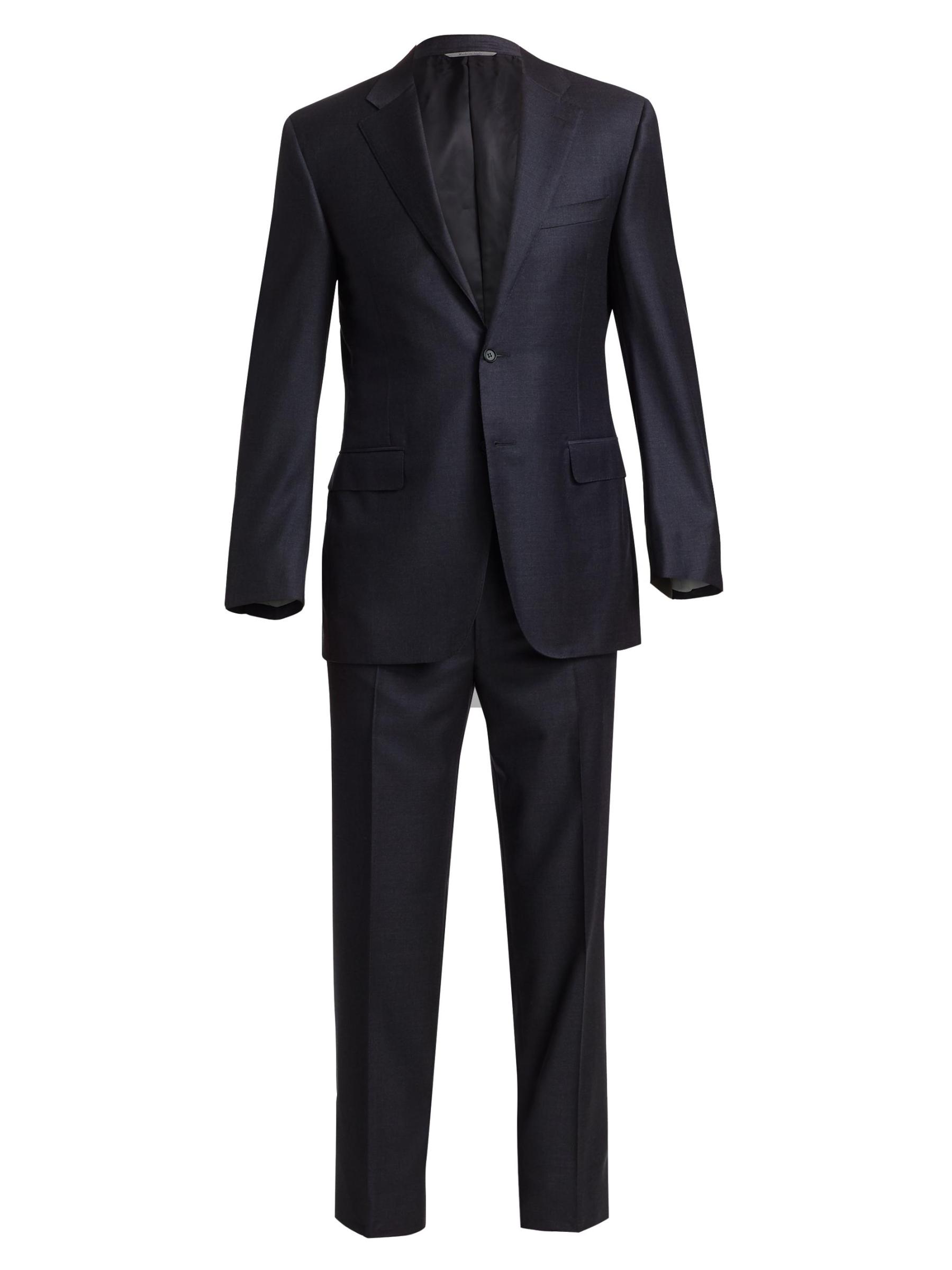 بدلة مصممة خصيصًا من الصوف الإيطالي مع بنطال بطيات أمامية. صوف. تنظيف جاف. صُنع في إيطاليا.