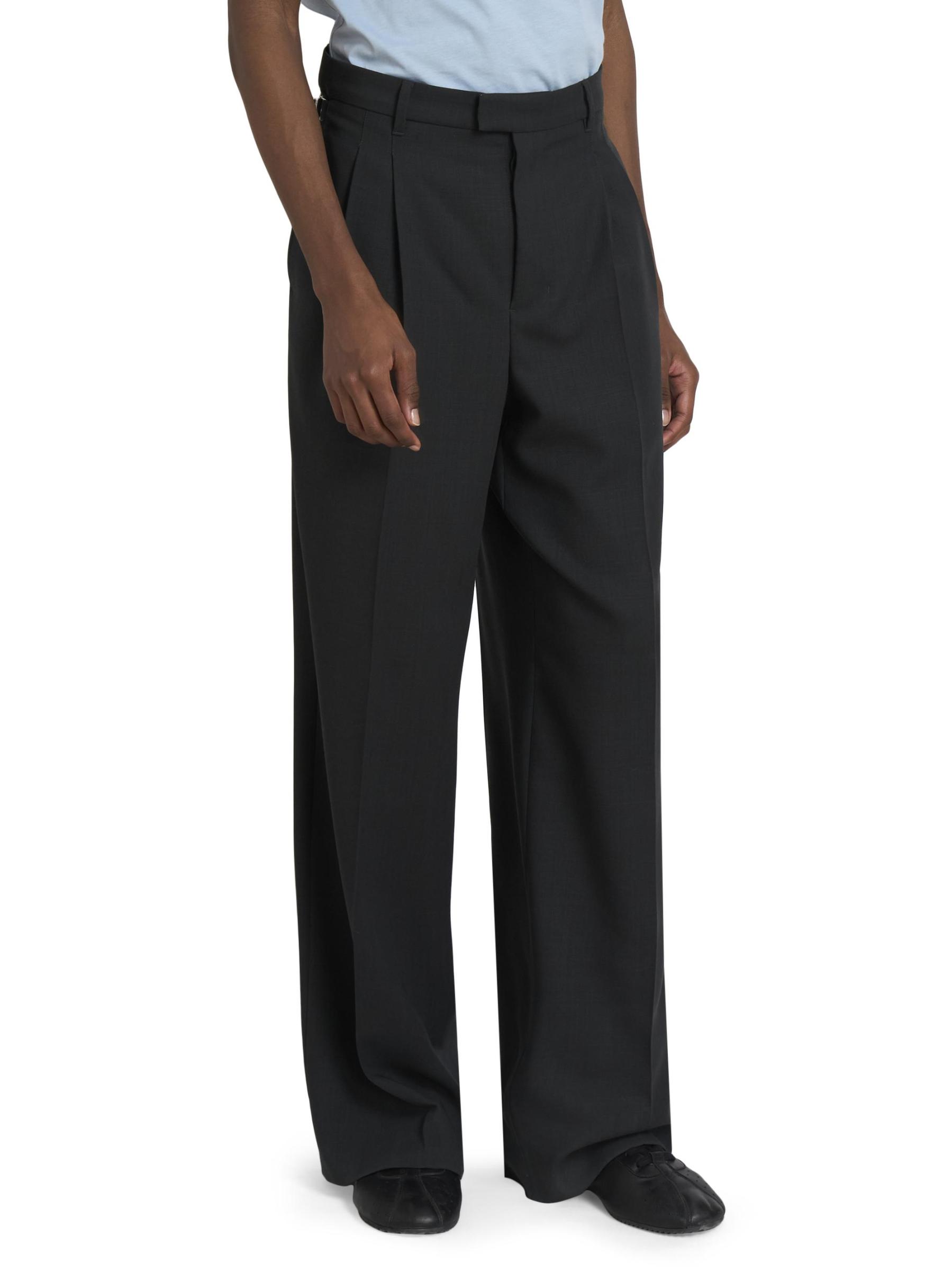 صُمم بنطال AMI Paris هذا المصنوع من الصوف بتصميم واسع الساق ويتميز بعروة ممتدة وحزام خصر مدبب. تُكمل التفاصيل المطوية في الأمام هذا الزوج.