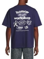 تيشيرت Workshop كبير الحجم من Honor The Gift مصنوع من القطن، وتم تزيينه بطباعة الشعار في الأمام والخلف.