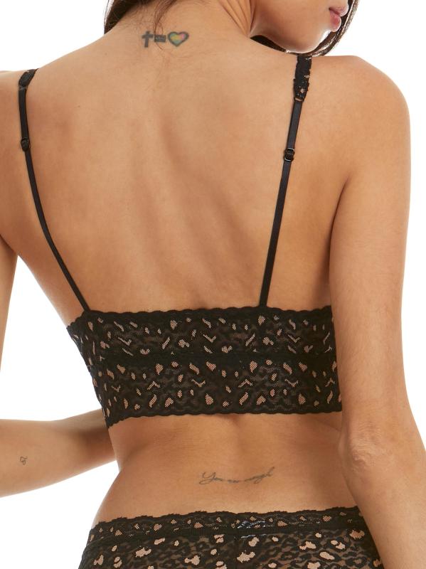 حمالة صدر Xdye من Hanky Panky مصنوعة من الدانتيل بنقشة جلد الفهد. تصميم طويل مستوحى من الطراز القديم مع صدر منمق ورقبة كلاسيكية على شكل حرف V يكمل المظهر.