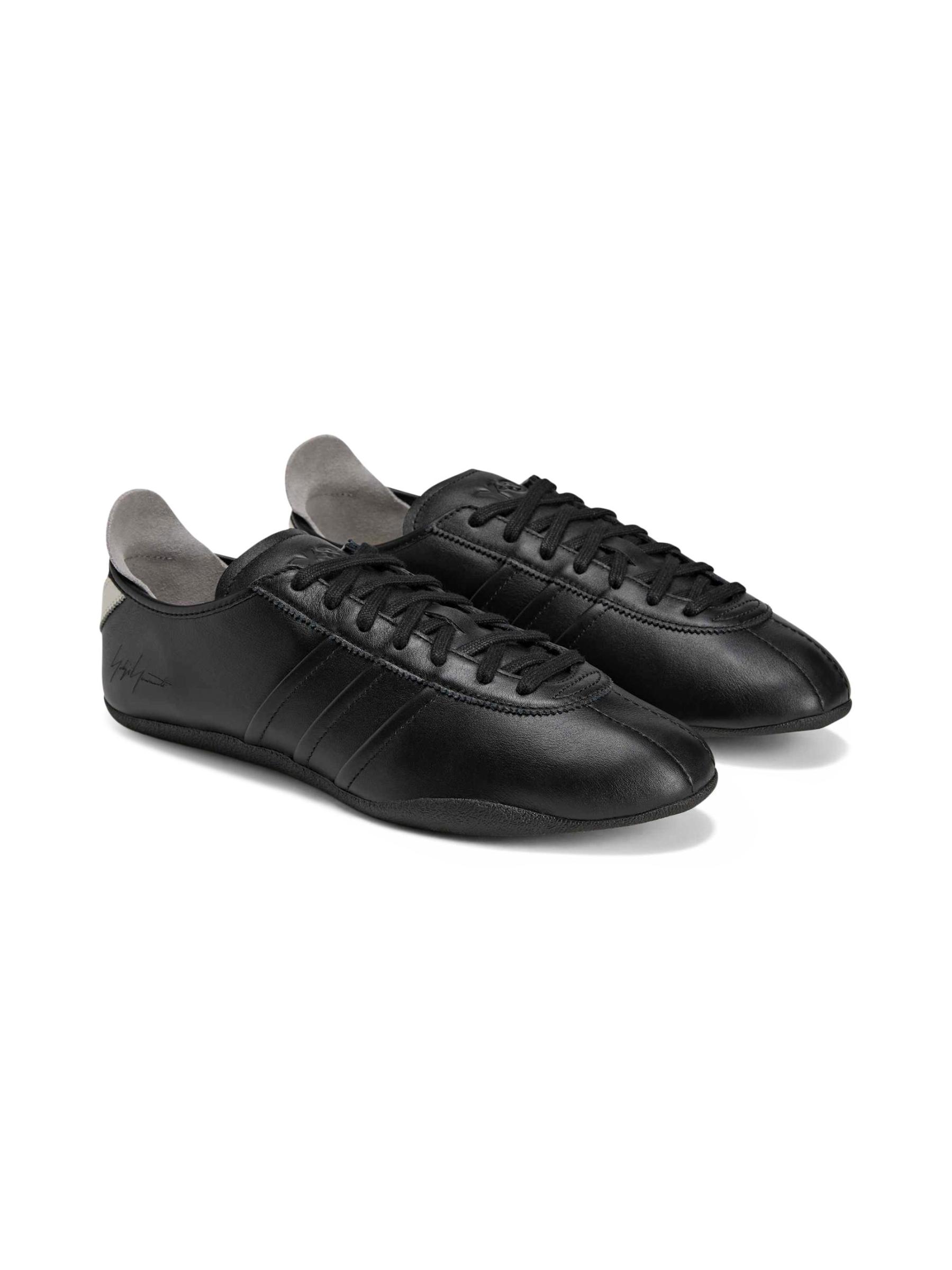 هذا الحذاء الرياضي Y-3 Tokyo ذو الرقبة المنخفضة من adidas مصنوع من الجلد الناعم مع تفاصيل متباينة على شكل حرف 'Y' في الخلف.