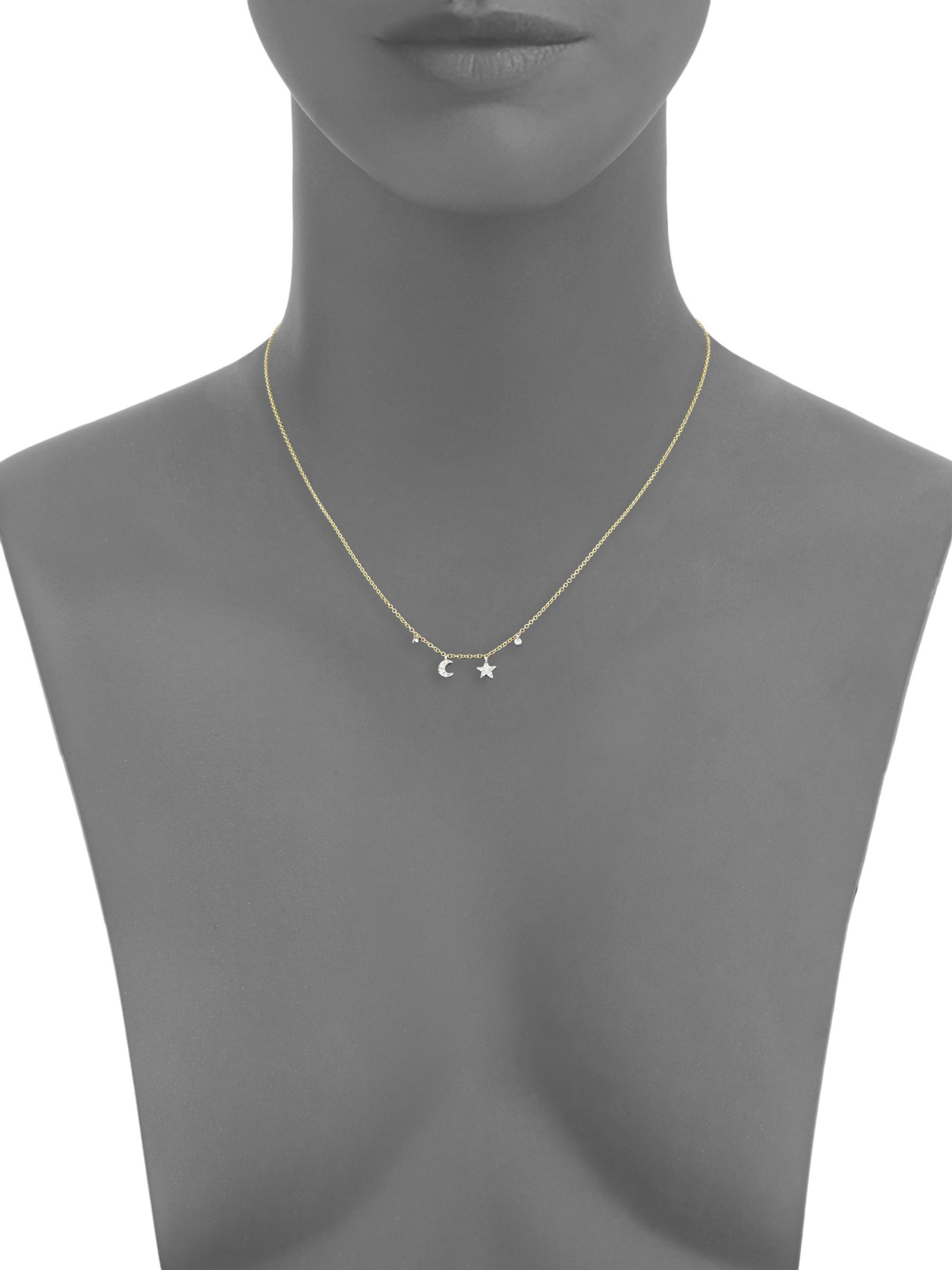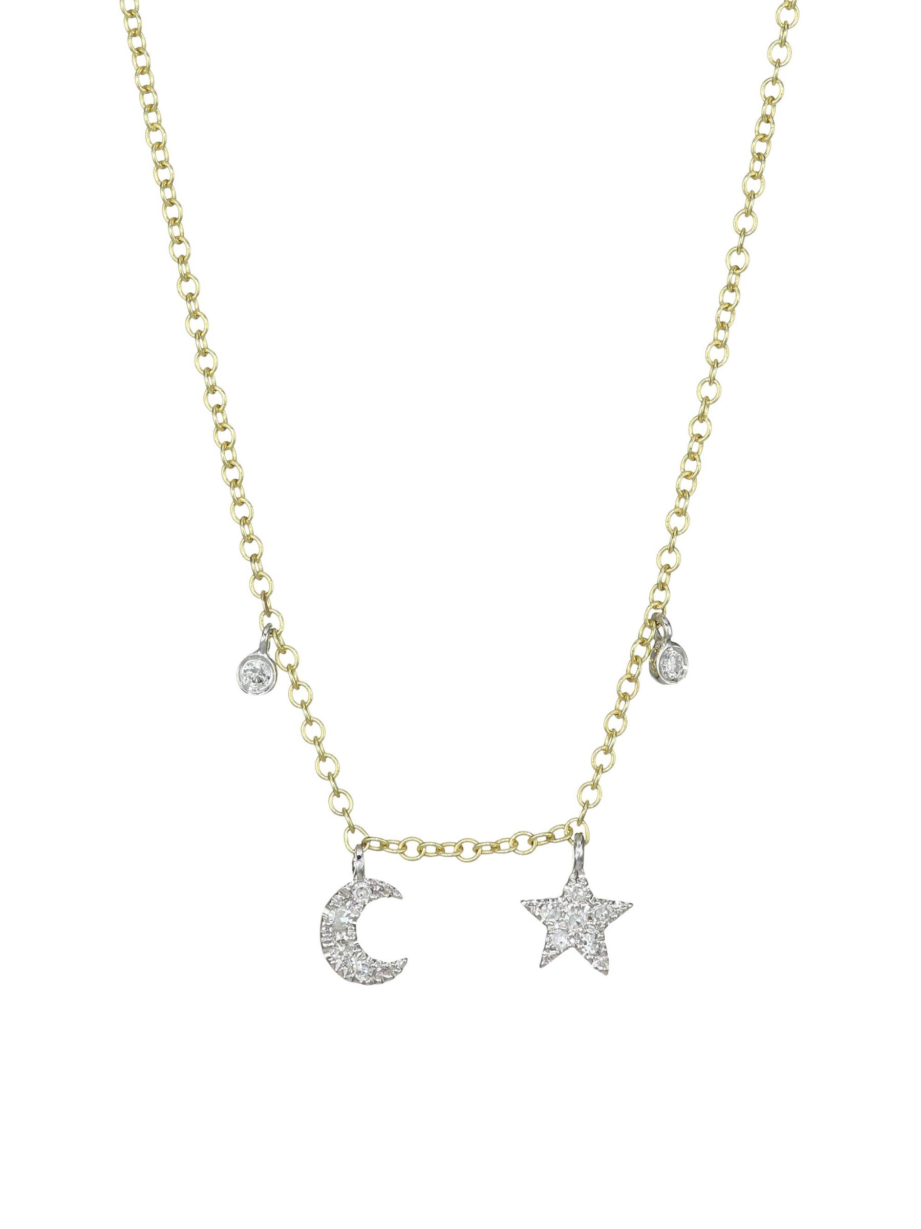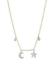 قلادة بسيطة من الذهب الأصفر عيار 14 قيراطًا مزينة بزخارف القمر اللامع والنجوم الماسية.