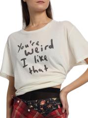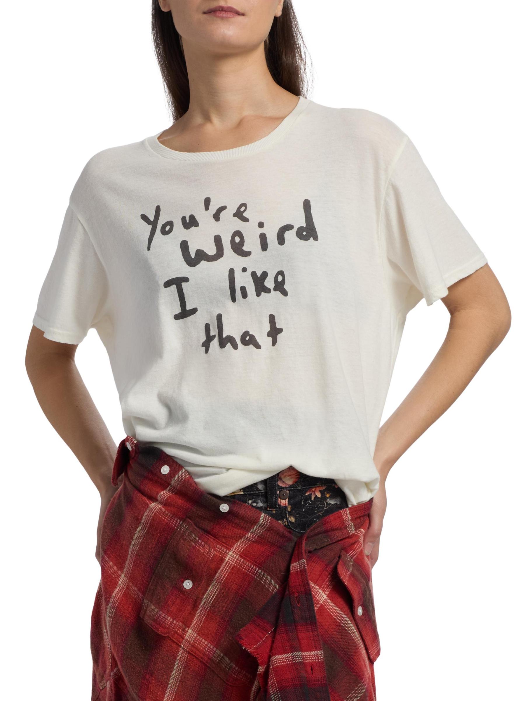 تيشيرت Boyfriend ذو الرقبة المستديرة من R13 مصنوع من القطن والكشمير ويتميز بطبعة رسومية مرحة على الصدر.رقبة مستديرة أكمام قصيرة تسحب 95% قطن/ 5% كاشمير يُغسل في الغسالة مستوردة