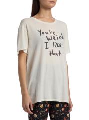 تيشيرت Boyfriend ذو الرقبة المستديرة من R13 مصنوع من القطن والكشمير ويتميز بطبعة رسومية مرحة على الصدر.