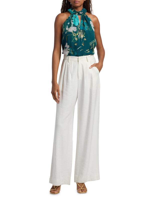 تتميّز بلوزة Yvette من Figue المصنوعة من مزيج فاخر من الحرير والألياف المعدنية برقبة رسن بربطة عنق وفتحة أمامية وقصّة بلا أكمام.رقبة هالتيرنك بدون أكمام إغلاق خلفي برباط ذاتي 90% حرير/ 10% ألياف معدنية تنظيف جاف مستوردة