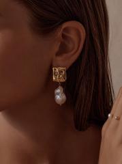 من مجموعة زاغورا. تتميز أقراط Lottie المذهلة من Amber Sceats بقطرات من اللؤلؤ الباروكي الأبيض معلقة على ترصيع مزخرفة مطلية بالذهب عيار 24 قيراطًا.لؤلؤ الباروك المستزرع في المياه العذبة، 18 مم نحاس مطلي بالذهب عيار 24 أرسل مرة أخرى صُنع في إيطاليا