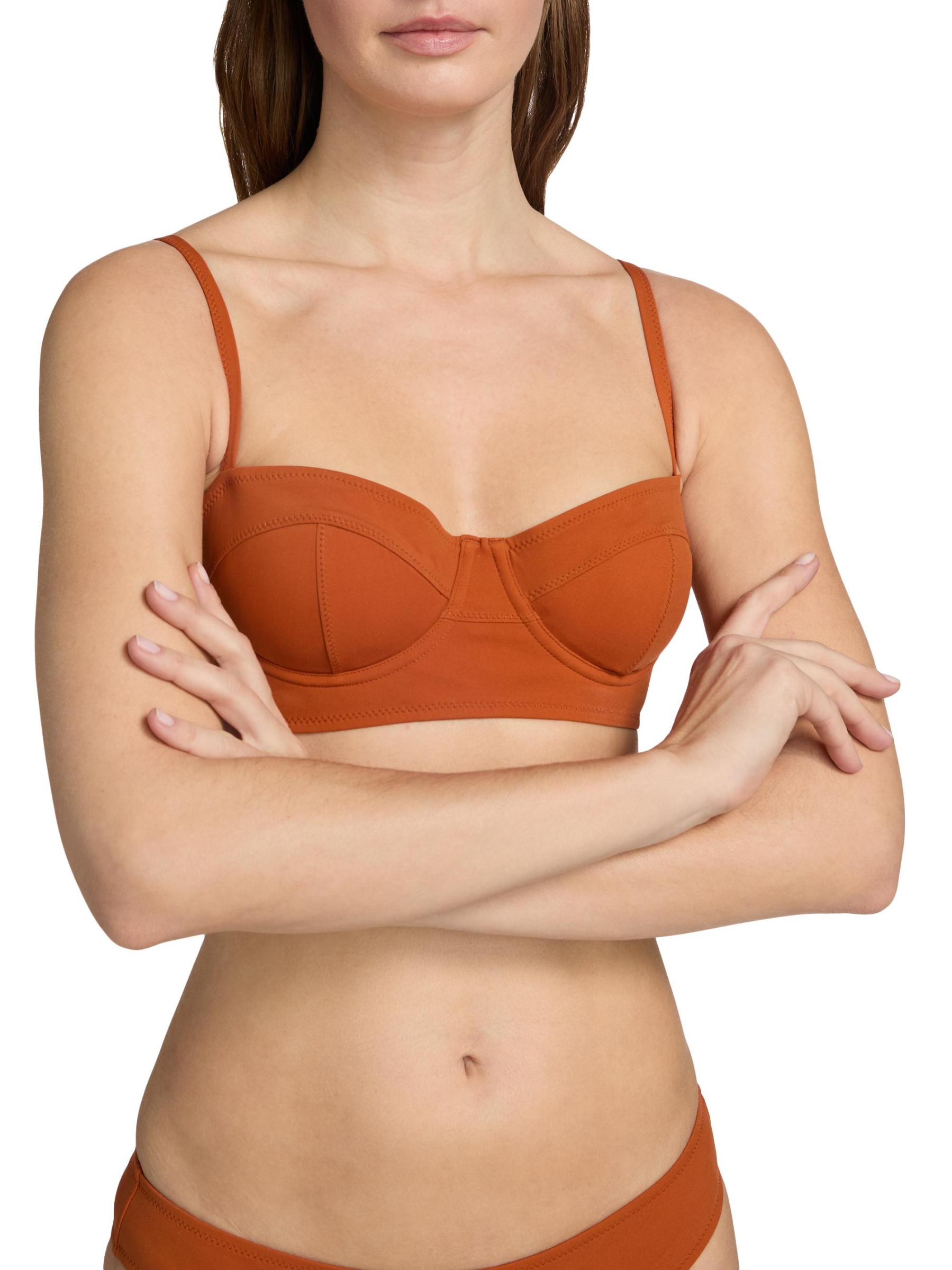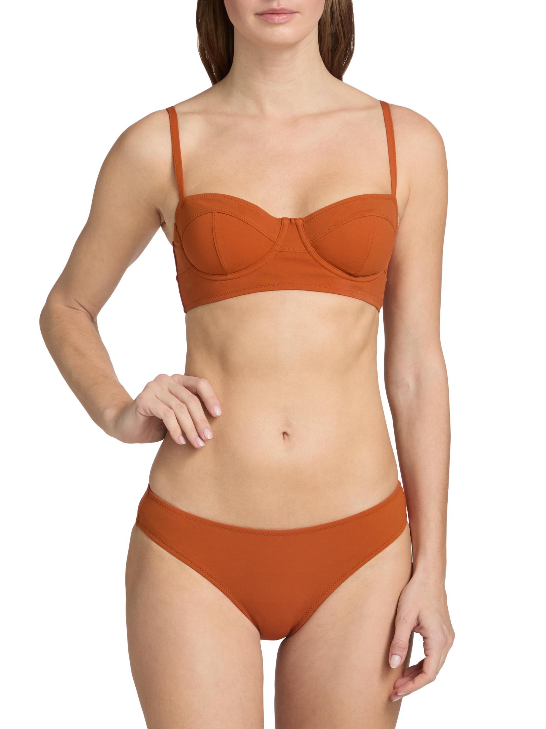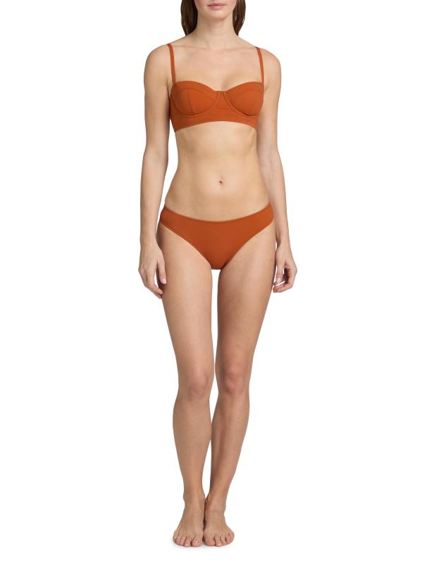 يتميز الجزء العلوي من البيكيني Zahara من Ulla Johnson بتصميم حمالة صدر داعمة مع أحزمة كتف قابلة للتعديل لتعزيز الراحة والملاءمة.فتحة رقبة على شكل قلب أحزمة كتف قابلة للتعديل 74% بولي أميد، 26% إيلاستين غسيل يدوي مستوردة