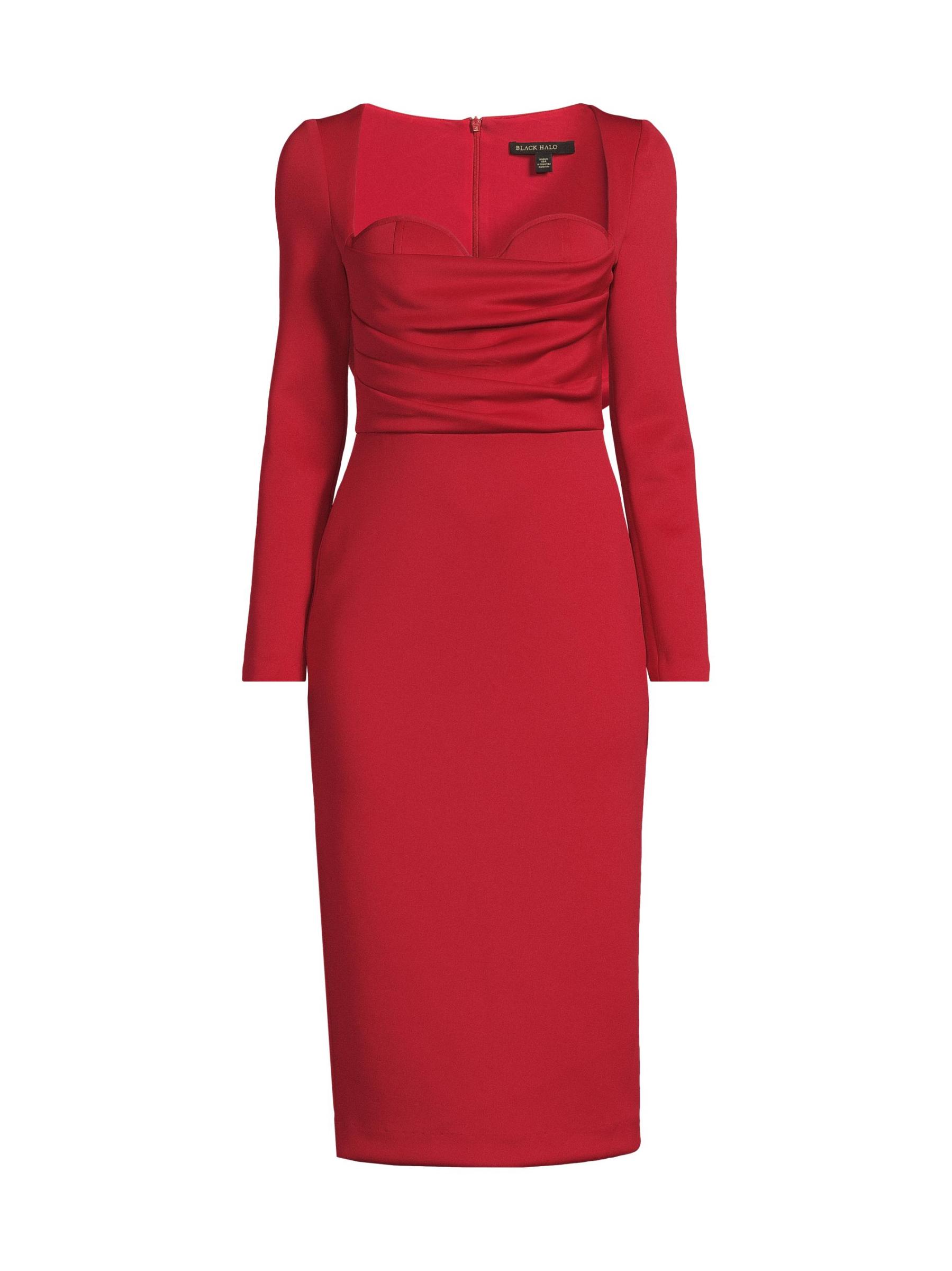 تضيف الرقبة شبه المحببة لمسة رومانسية إلى فستان كوكتيل Zanry المصنوع من الساتان من Black Halo.رقبة على شكل قلب أكمام طويلة إغلاق بسحّاب خلفي 86% بولياميد/ 14% إيلاستين البطانة: 92% بولياميد/ 8% إيلاستين تنظيف جاف صُنع في الولايات المتحدة الأمريكية