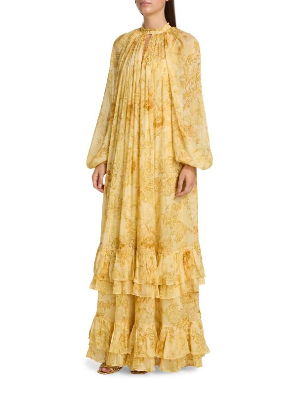فستان ماكسي بحواف متعددة بطبعة Zar