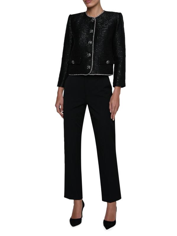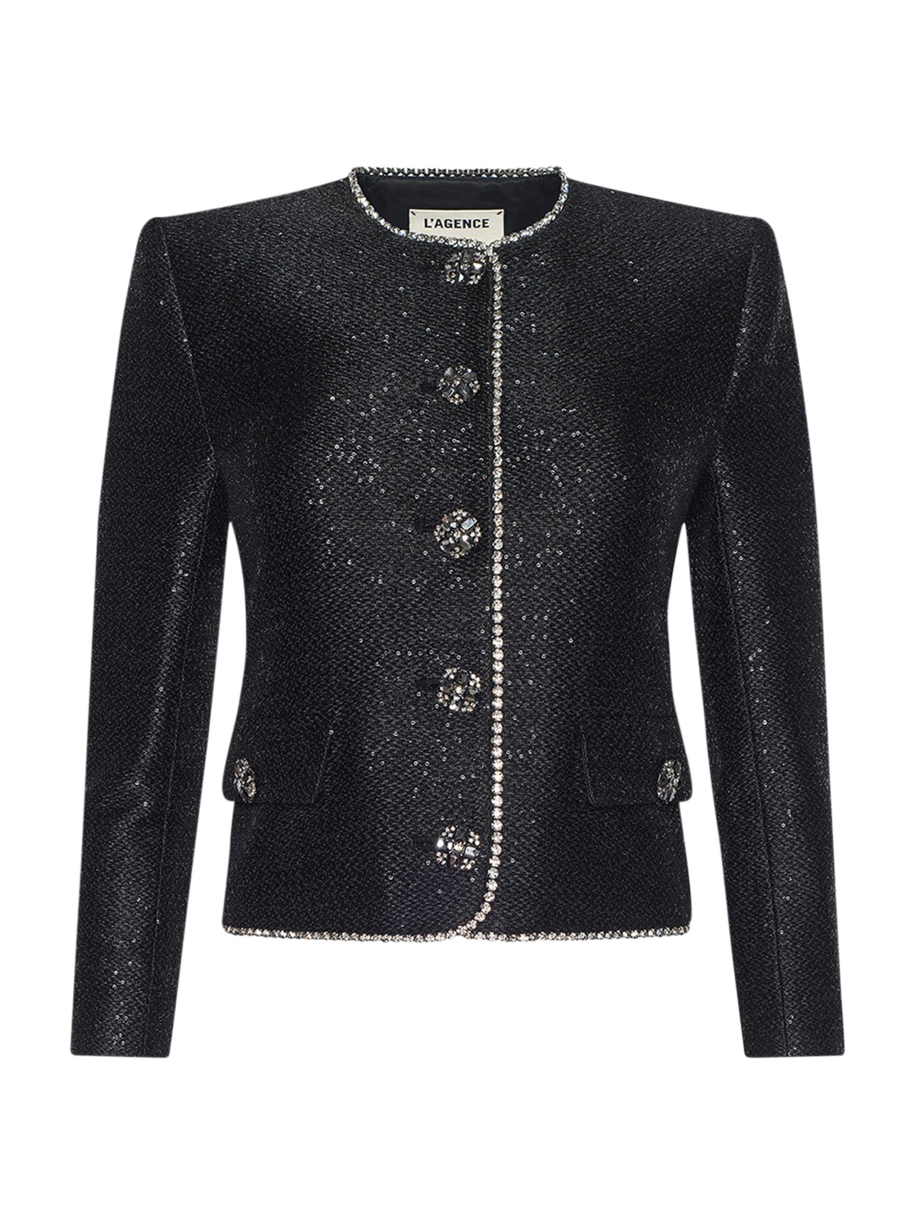 جاكيت Zell من L'AGENCE مصنوع من التويد المطرز ومصمم بزخارف وأزرار كريستالية مبهرة.