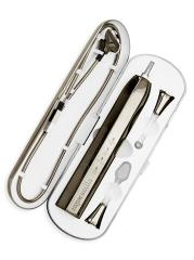 33,000 ضربة في الدقيقة بمقبض مصنوع من الكروم مصمم هندسيًا على شكل رأس فرشاة حاصل على براءة اختراع بالإضافة إلى مؤقت تلقائي لرأس التلميع لمدة دقيقتين في حالة تأهب رباعي كل 30 ثانية، بما يتوافق مع حقيبة السفر، شاحن مغناطيسي يعمل باللمس مع USB.