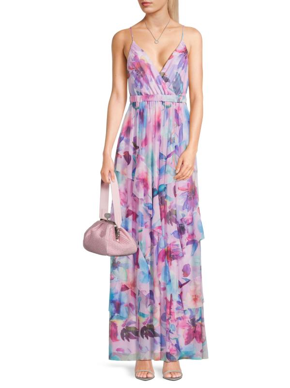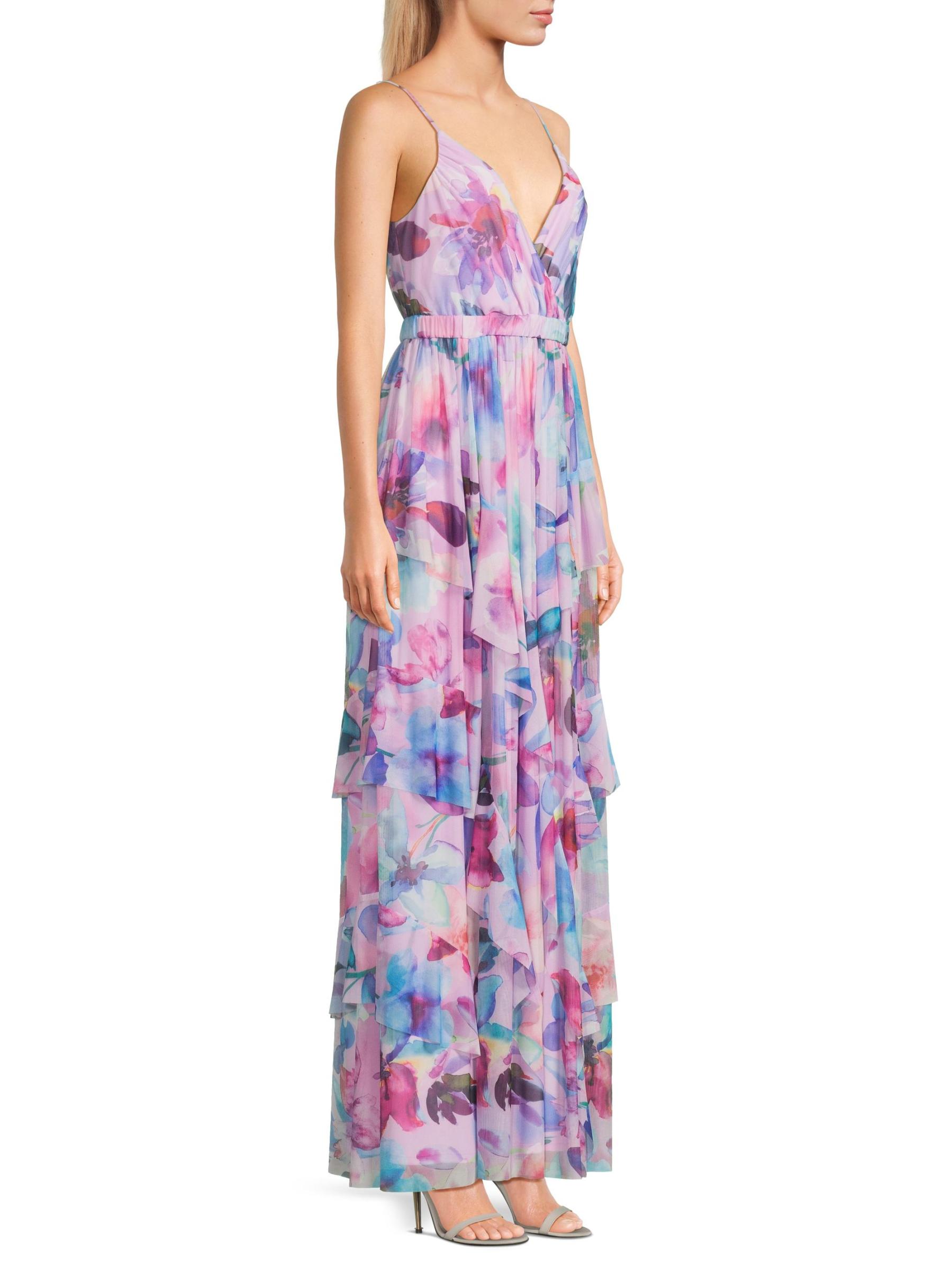 صُمم فستان Zoey maxi هذا من Liv Foster من نسيج شبكي مزهّر برقبة واسعة على شكل حرف V وخصر مطاطي وتنورة مكشكشة.