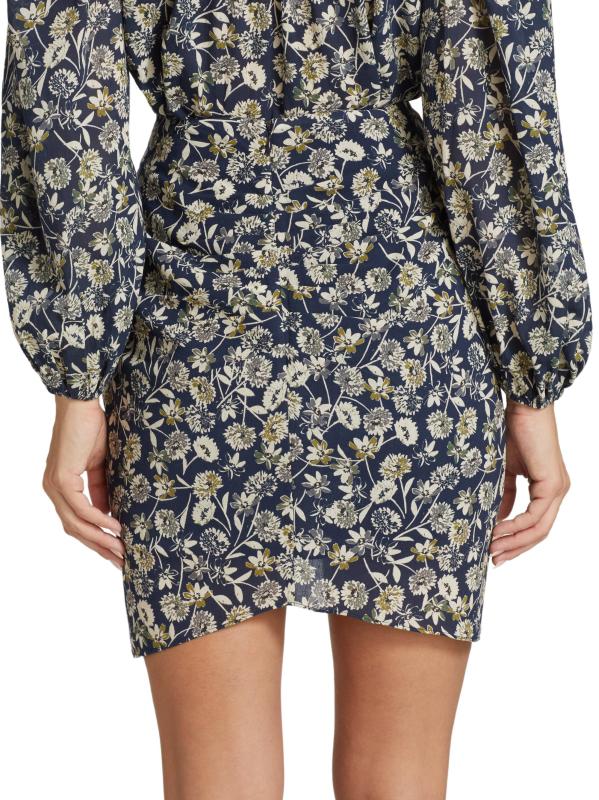 تتميز تنورة Zuri القصيرة من الجانب الغربي بتصميم ضيق عالي الخصر مصنوع من القطن المزركش بالزهور. تضفي التفاصيل الجانبية المكشكشة وحافة التوليب مزيدًا من الأناقة على المظهر.