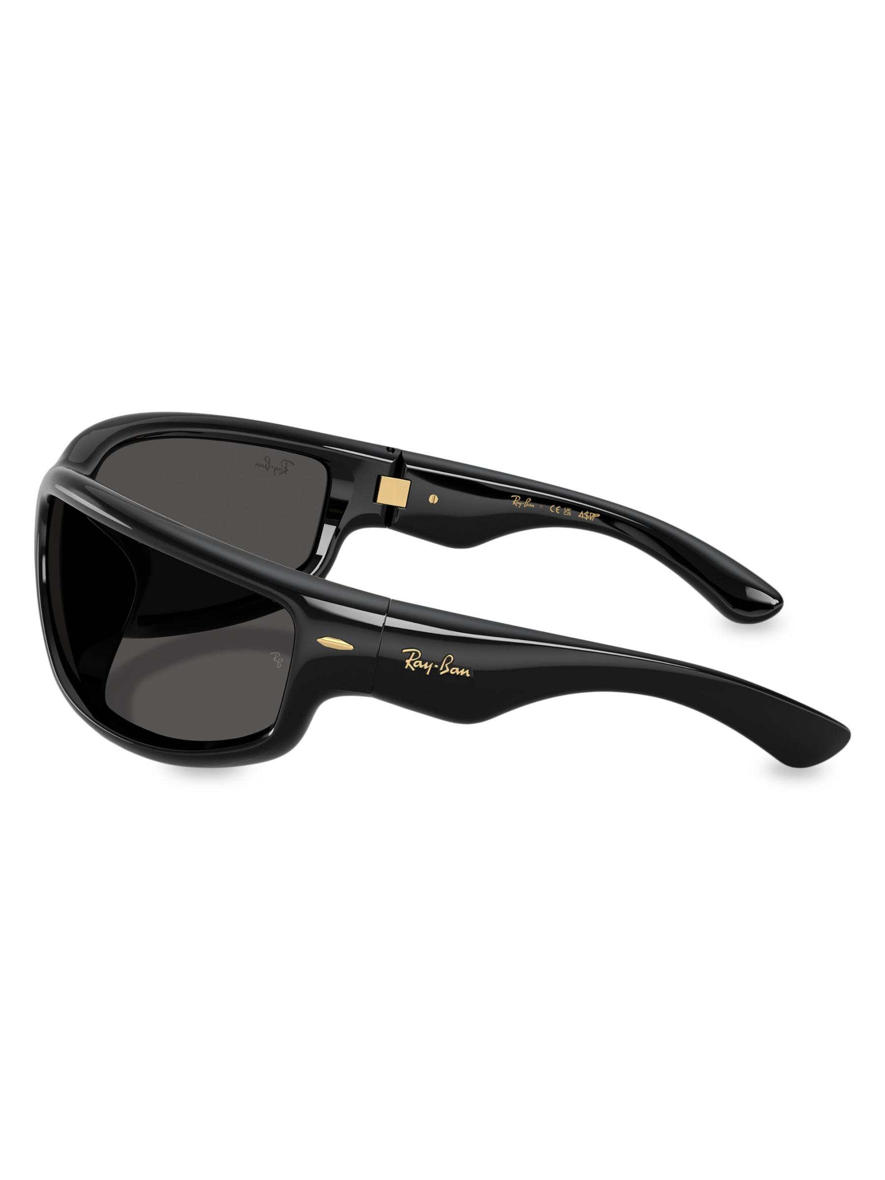Ray-Ban's RB4941 sunglasses feature a bold, sporty silhouette with a dynamic wraparound shape for full coverage and standout style. The lightweight frame curves comfortably around the face, offering both performance and fashion appeal. Featuring the iconic Ray-Ban logo at the temples and lenses, this style fuses attitude with function.