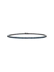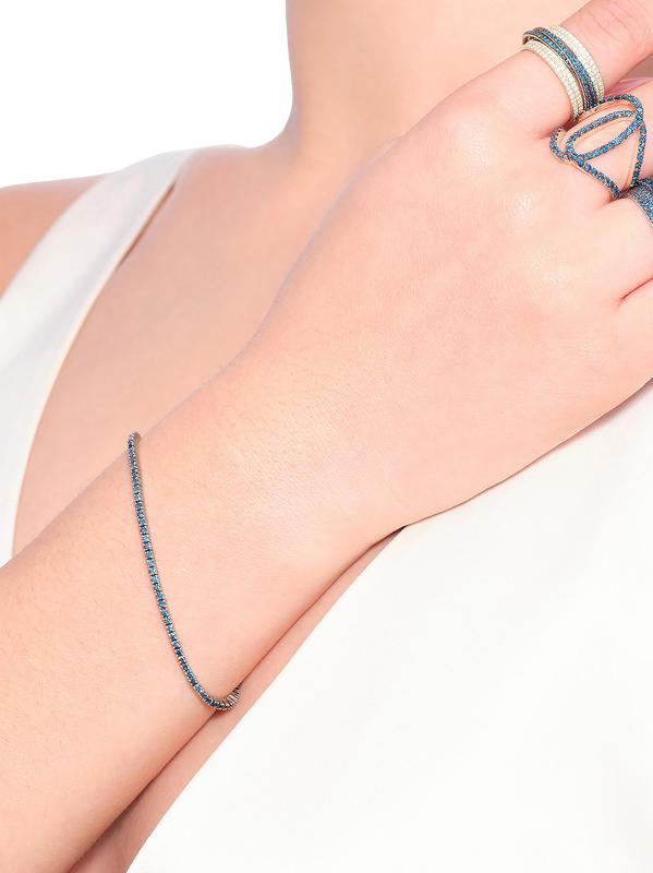 A modern take on a classic style, this tennis bracelet from Lana is crafted of 14K black gold set with treated natural blue diamonds.
