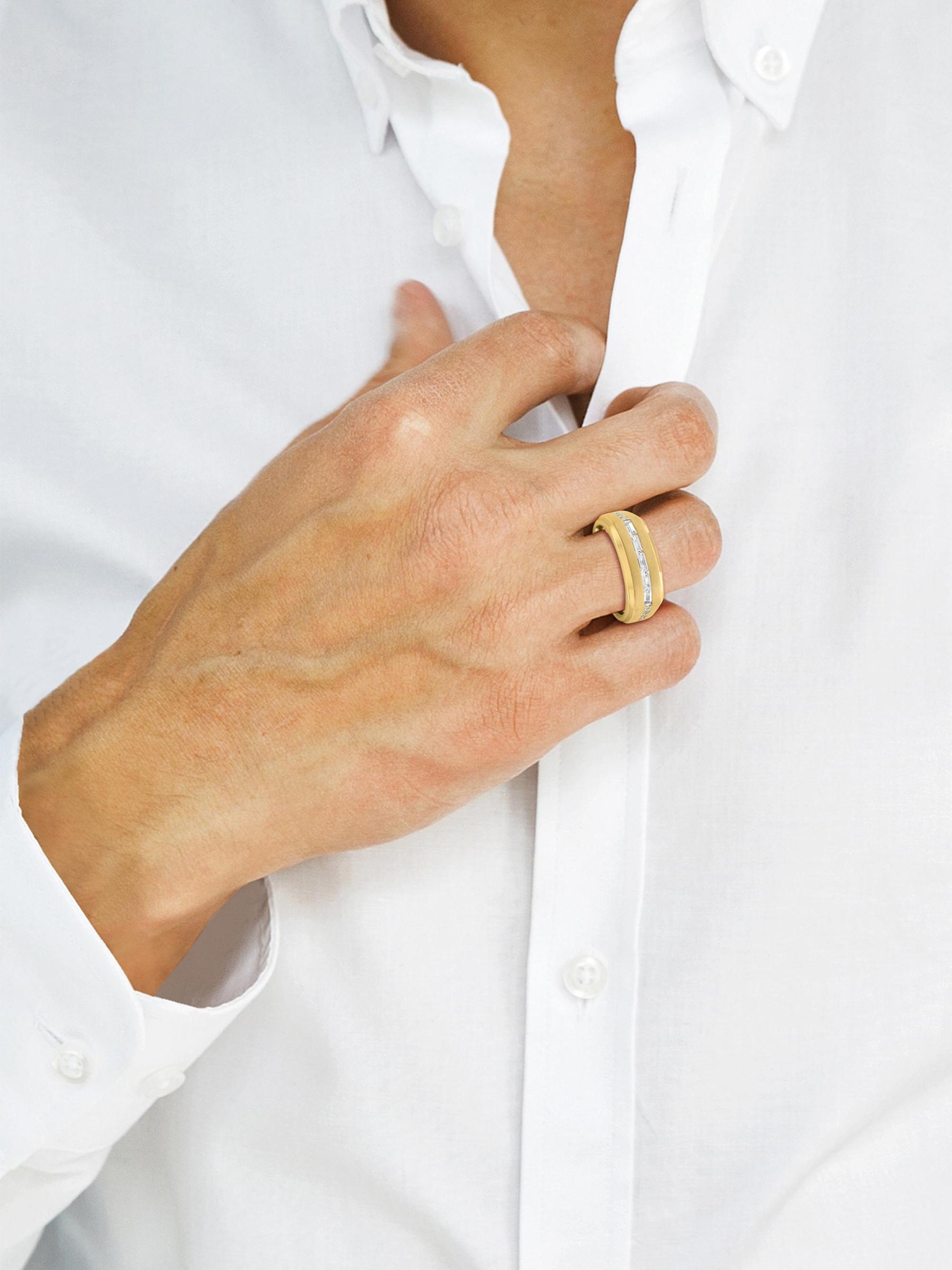 Channel-set round and emerald-cut white sapphires center this 14K-gold-plated sterling silver ring from Saks Fifth Avenue Collection.White sapphires 14K gold-plated sterling silver Made in USA
