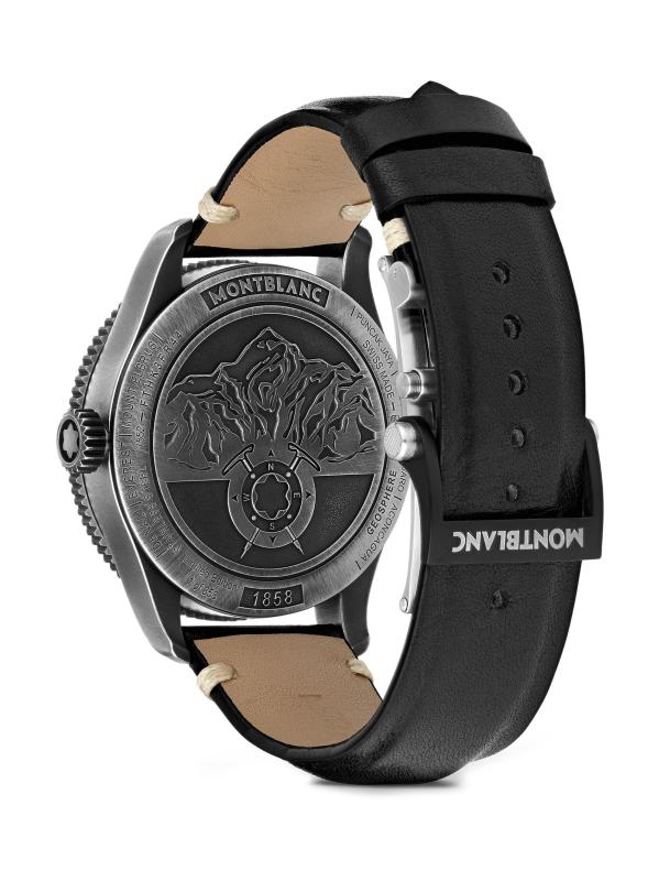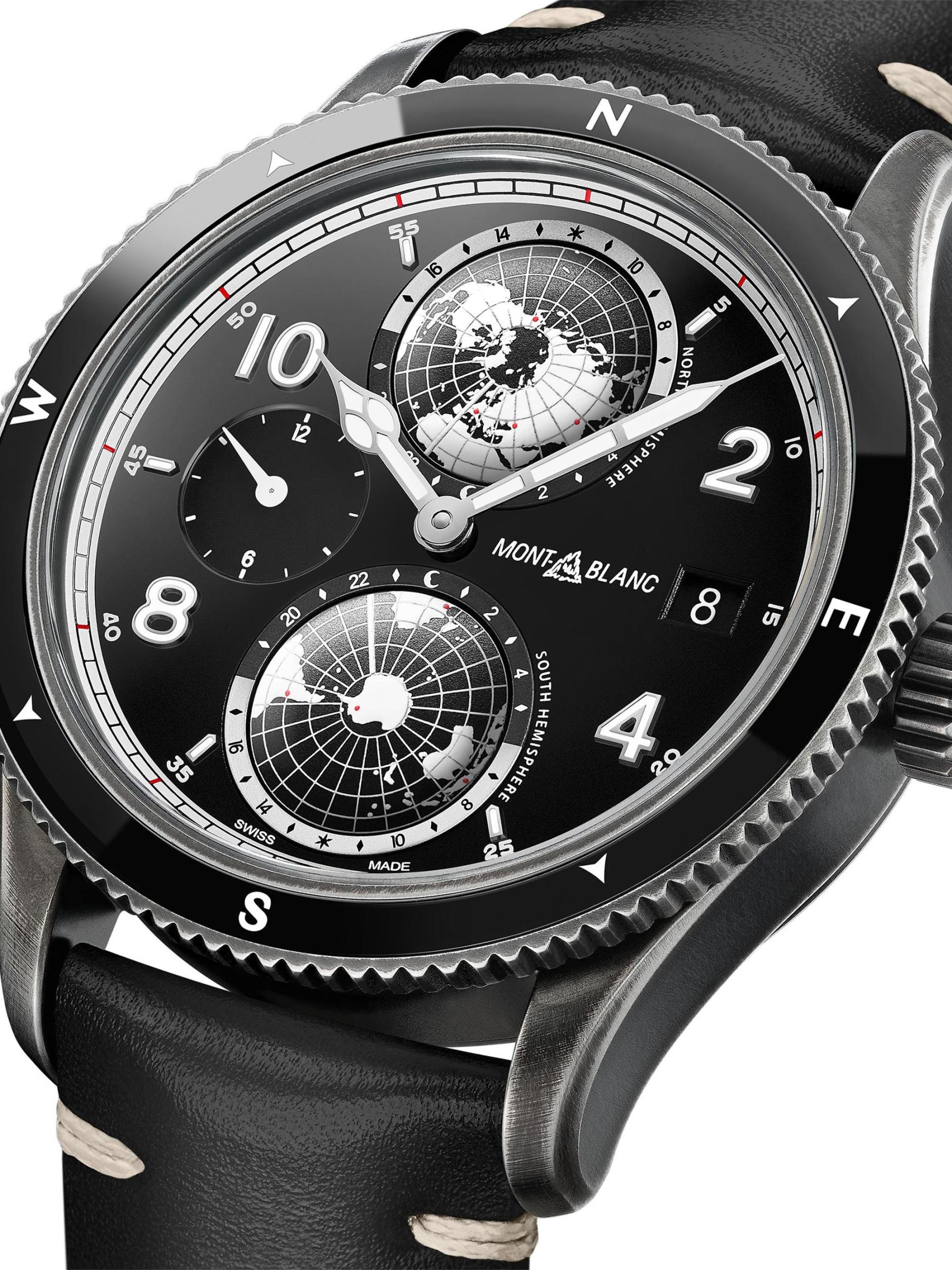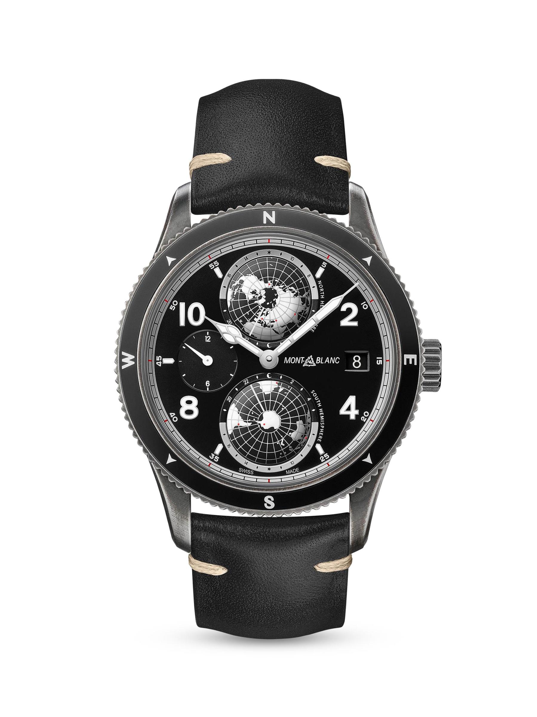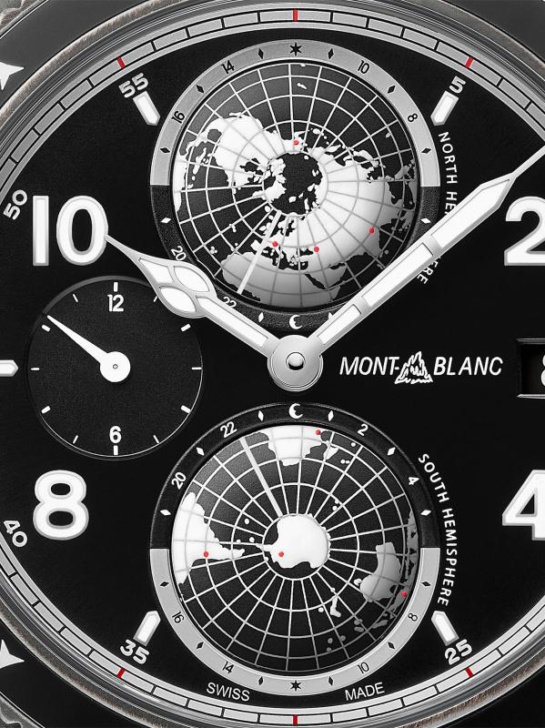 From the 1858 Collection. The Montblanc 1858 Geosphere limited-edition watch comes in a 42mm case combined with white and contrasting black design details