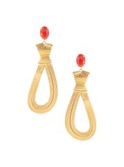 18K Yellow Gold, Coral Bamboo Drop Earrings