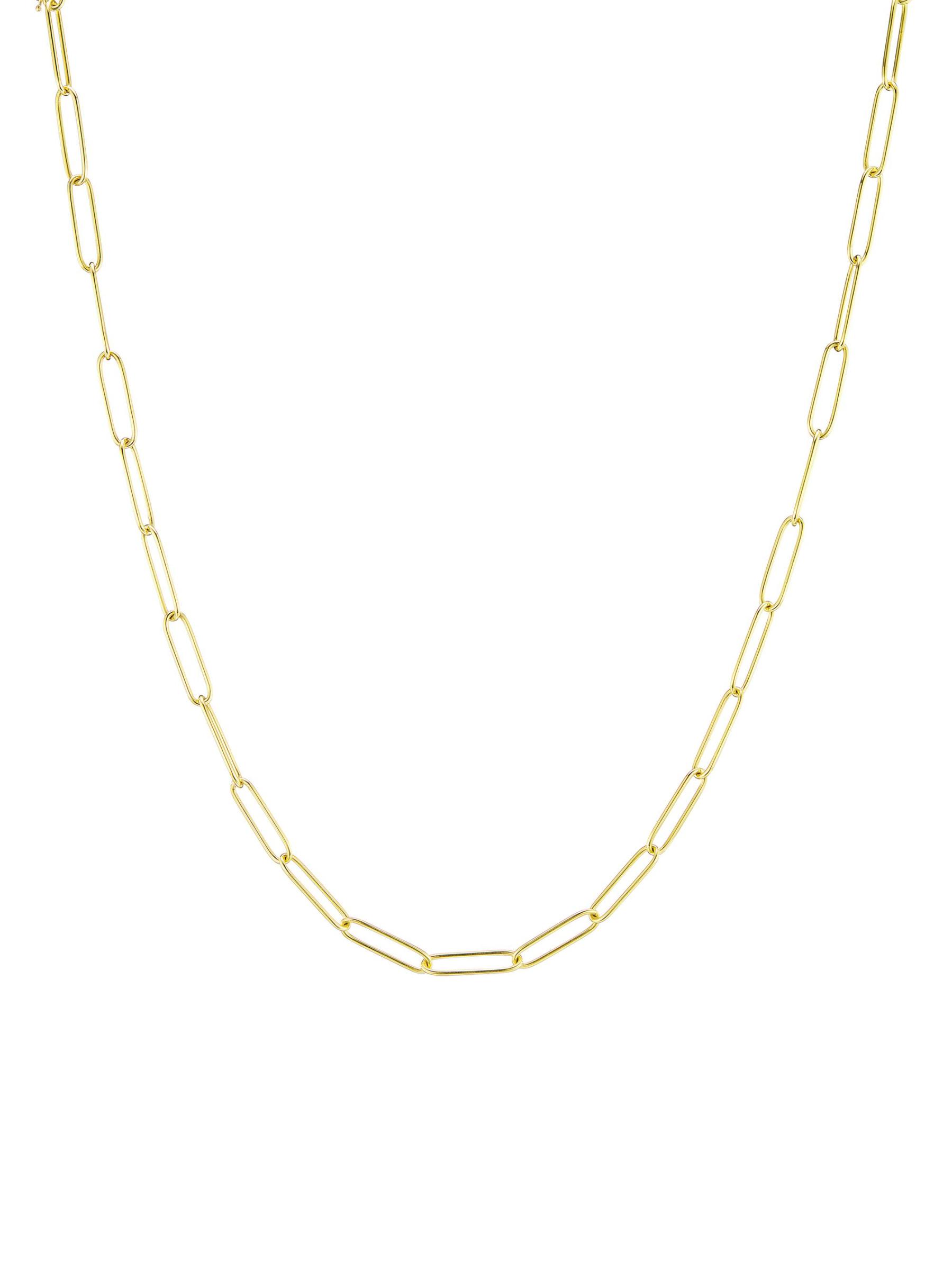 Oval links in a modern paper clip silhouette gleam in 18K yellow gold.18K yellow gold Paper Clip clasp closure Made in USA