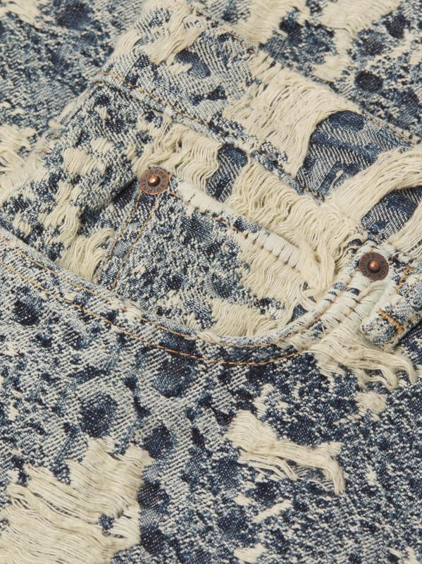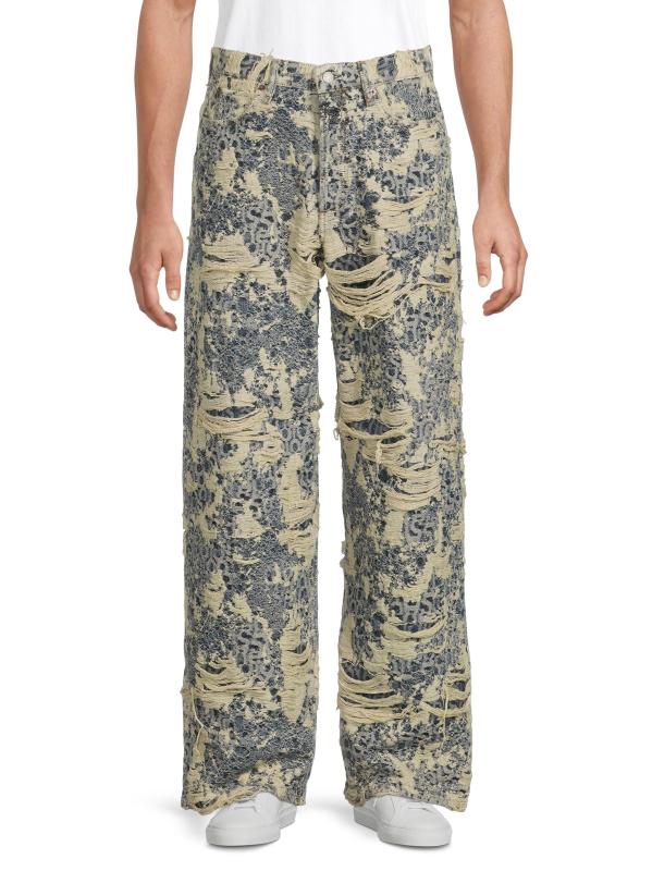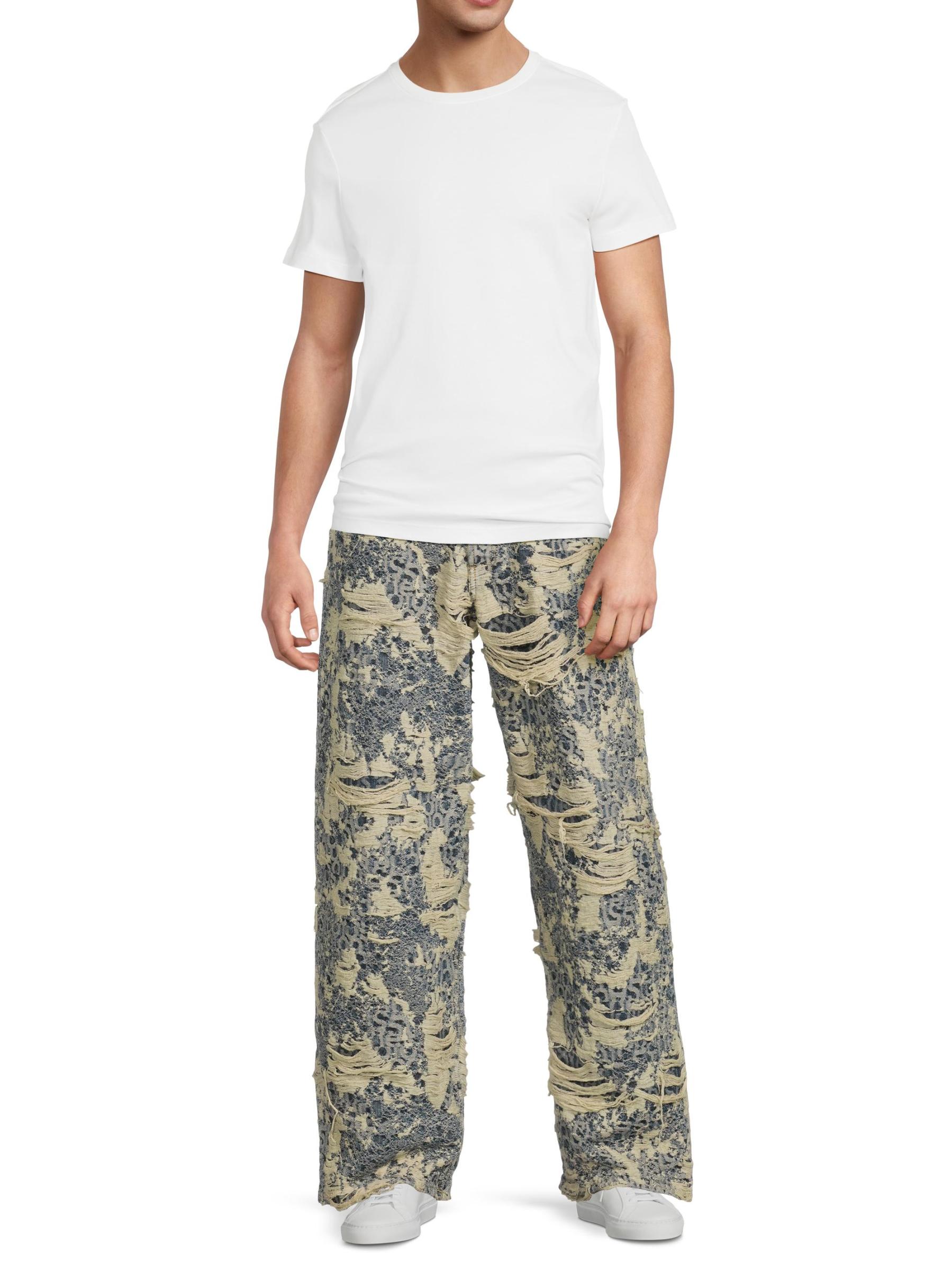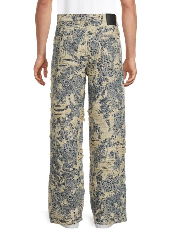 Designed with a relaxed, straight-leg silhouette, Acne Studios' 1981 five-pocket-style jeans are crafted of cotton monogram-patterned denim and styled with severe distressing.