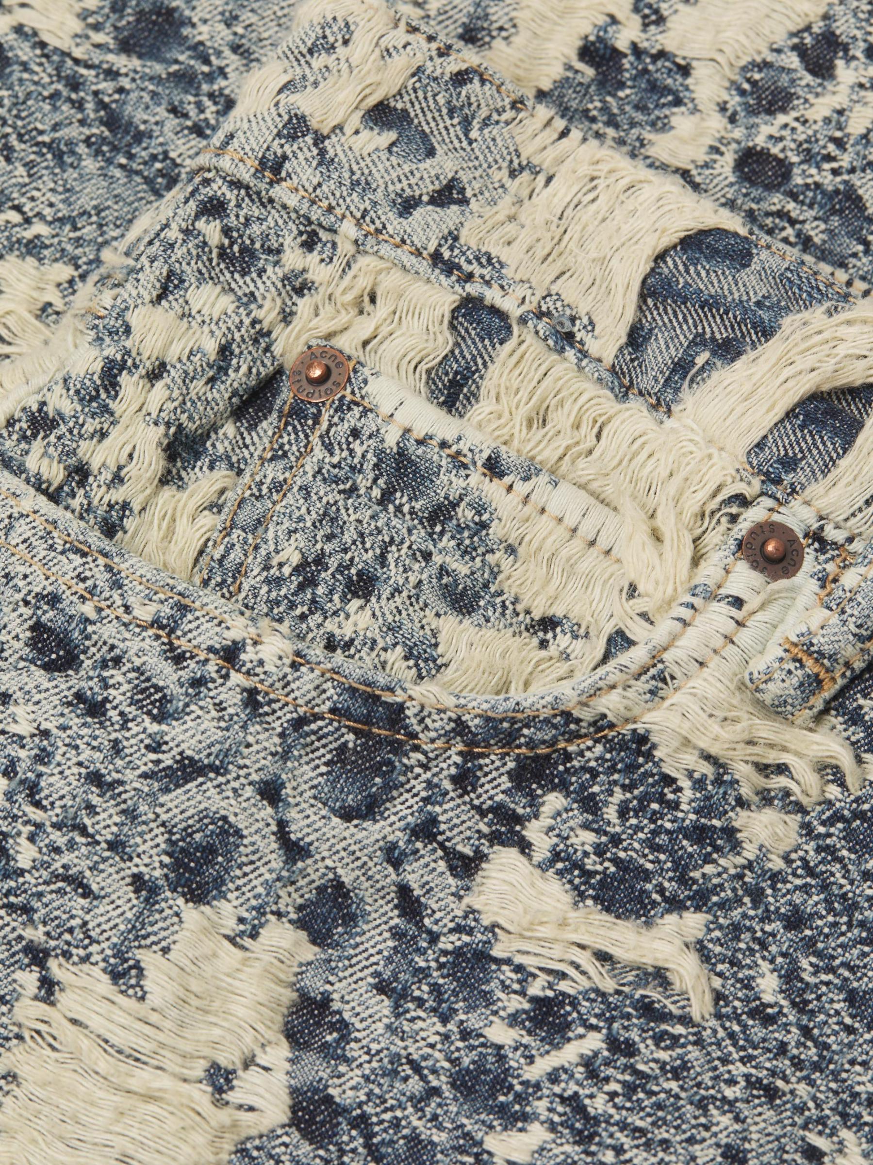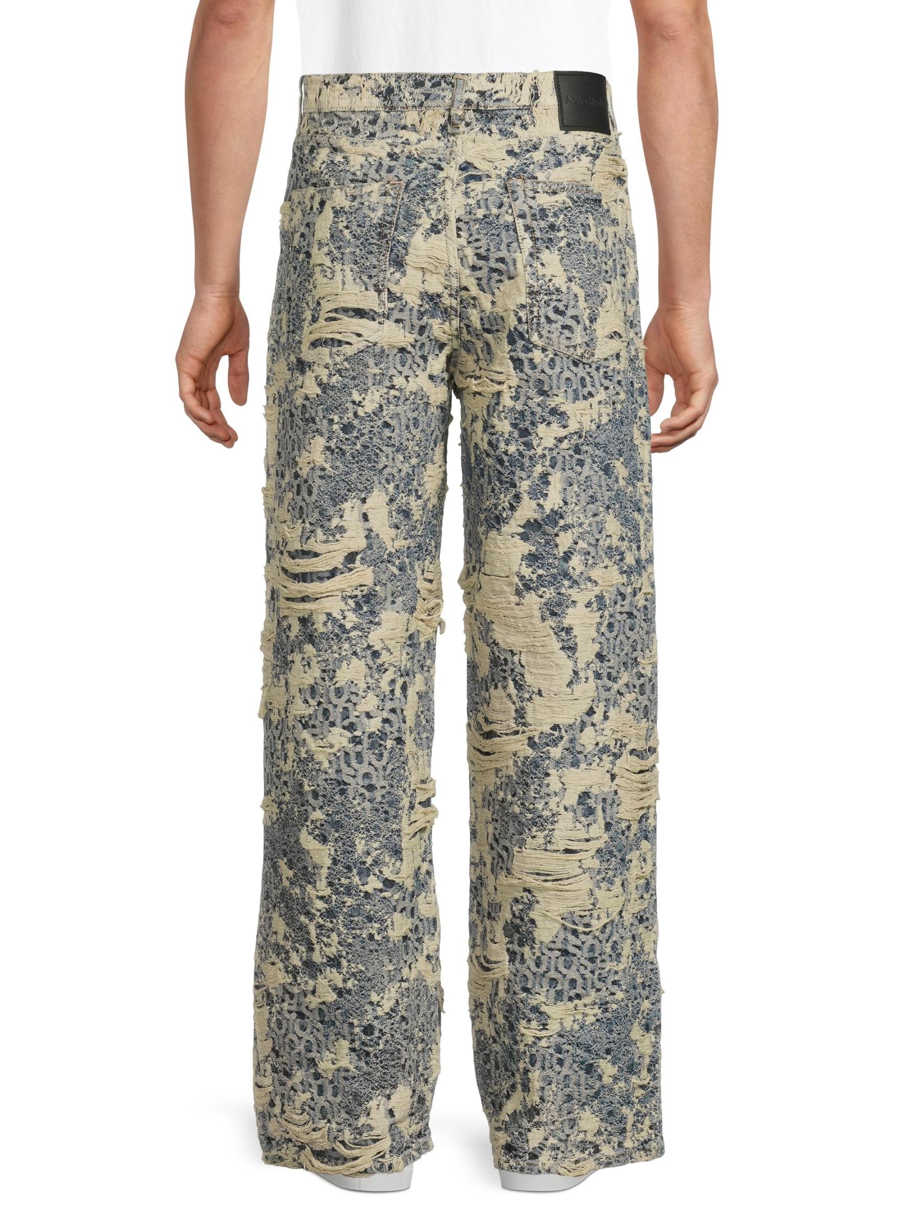 Designed with a relaxed, straight-leg silhouette, Acne Studios' 1981 five-pocket-style jeans are crafted of cotton monogram-patterned denim and styled with severe distressing.Five-pocket style Zip fly, button closure 100% Cotton Patch: 100% leather Hand wash Made in Italy